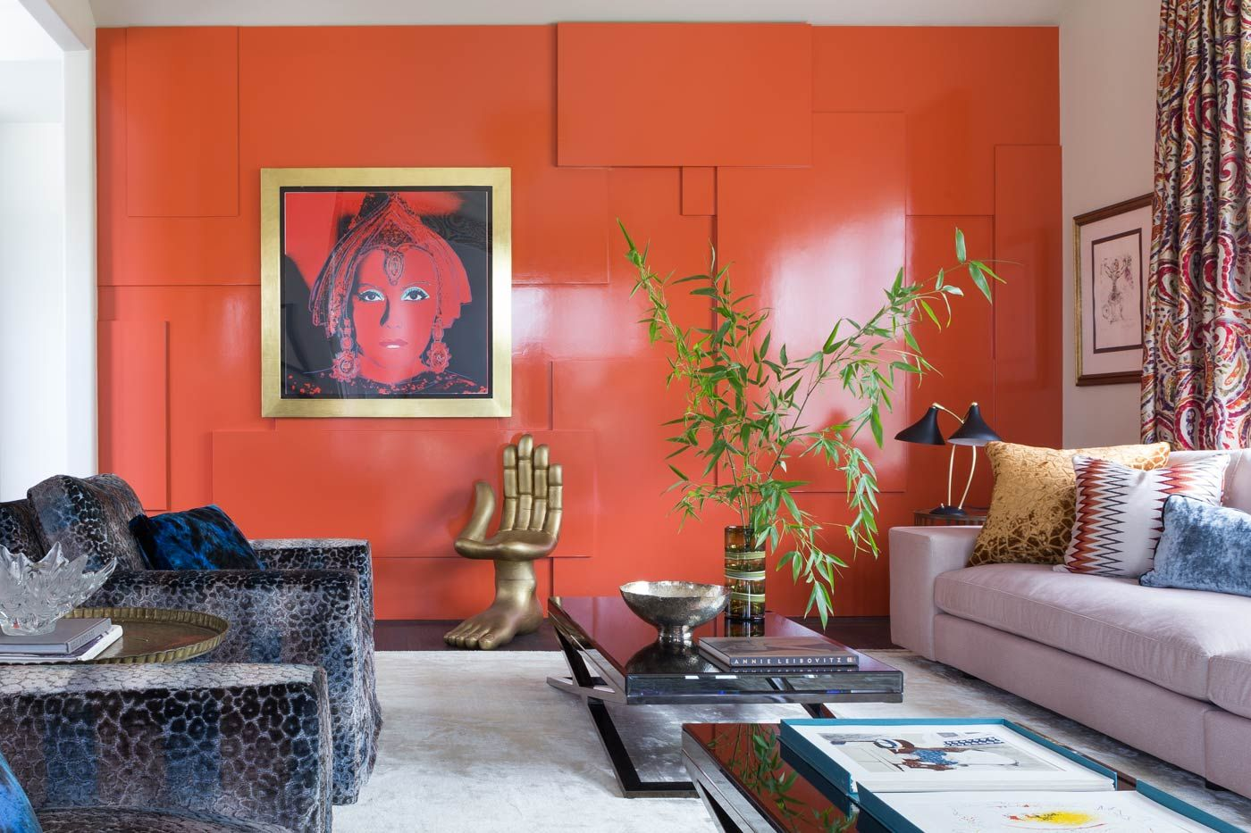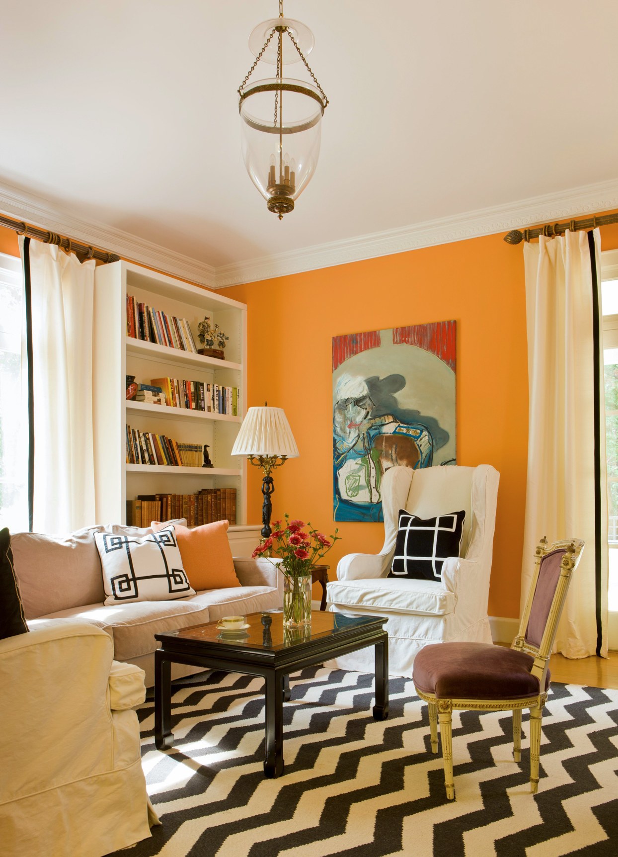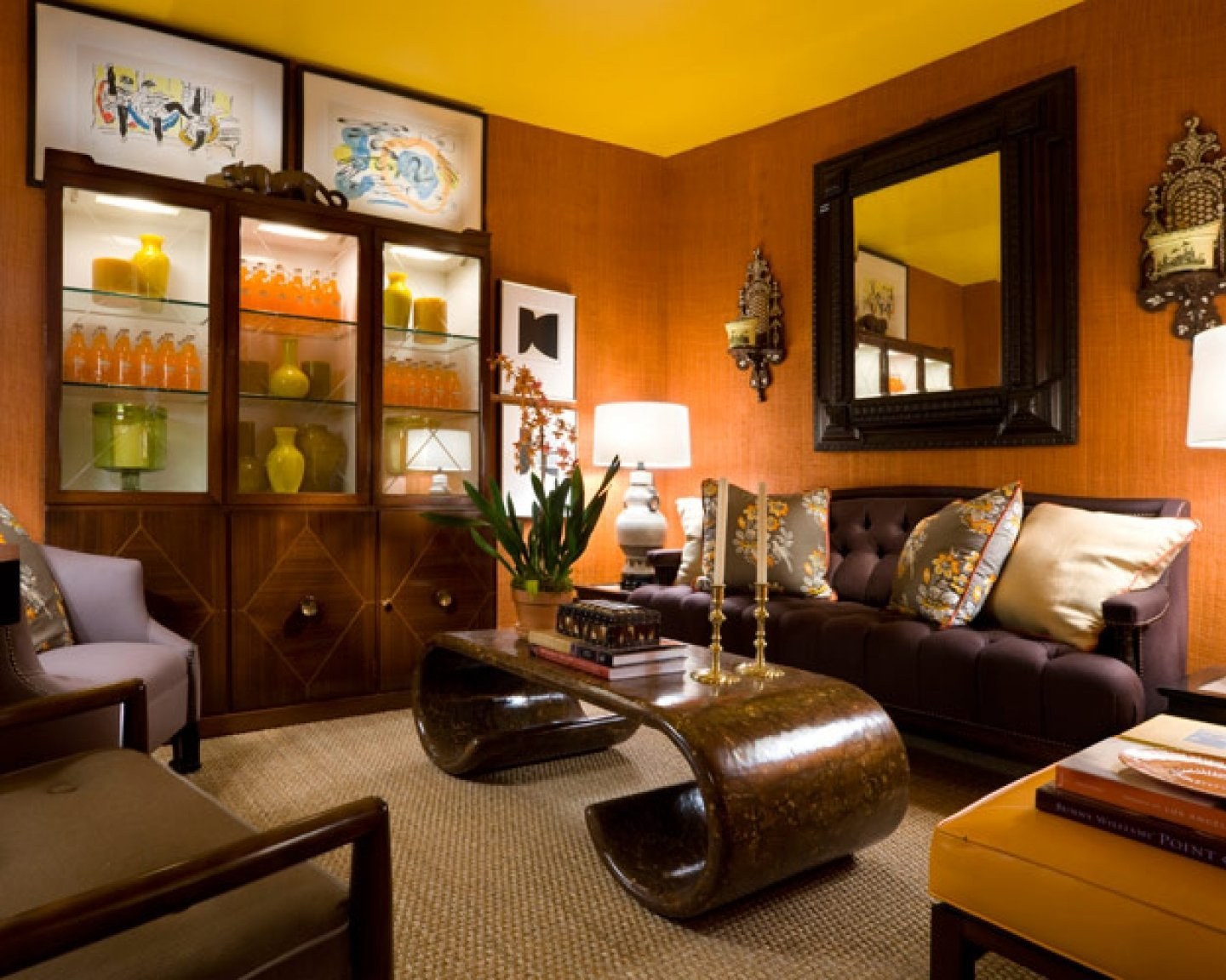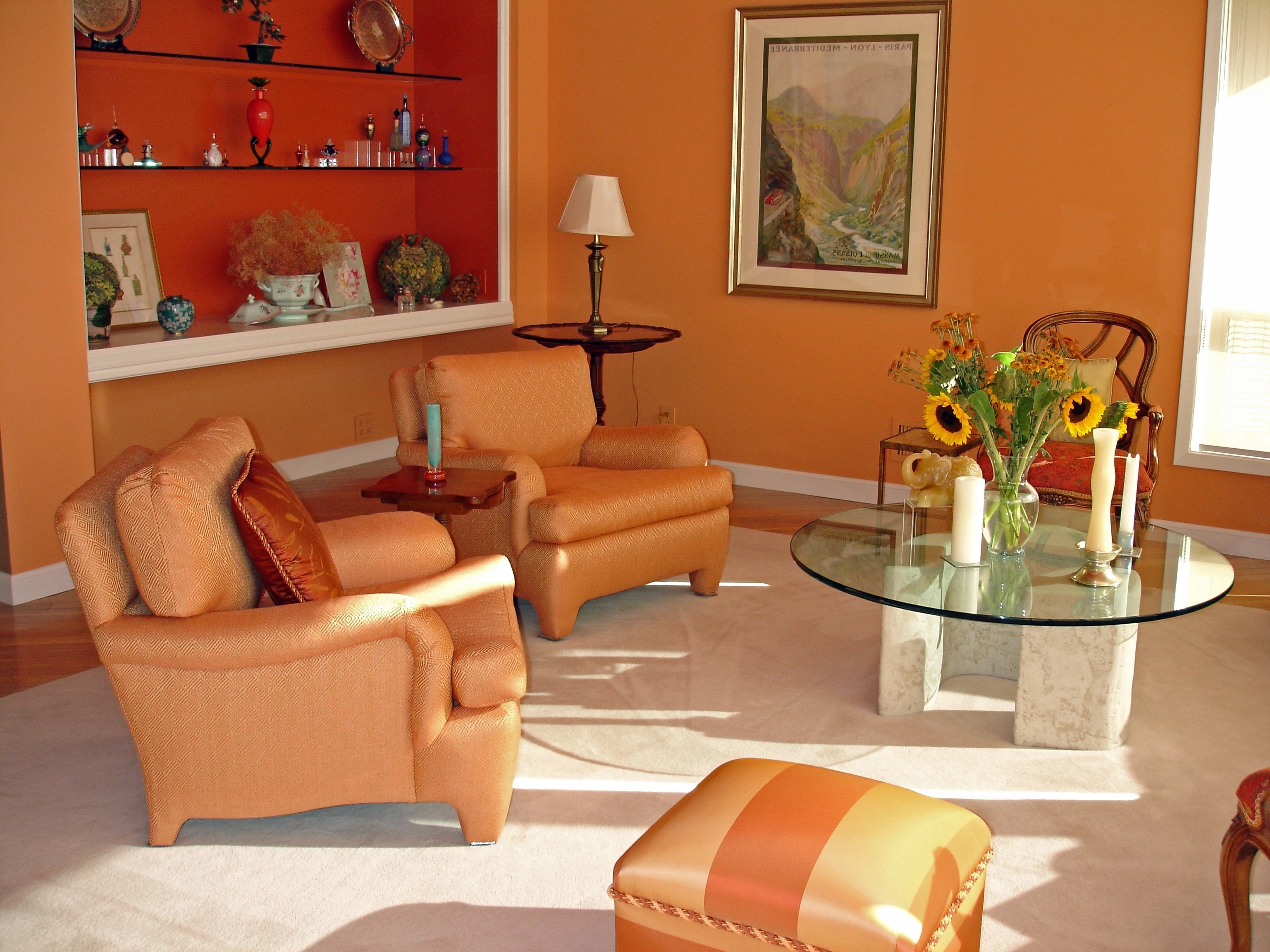 Оранжевые стены в гостиной