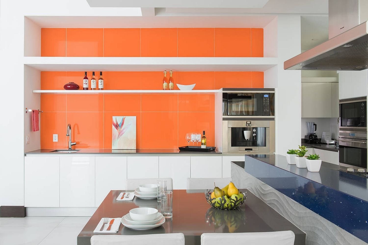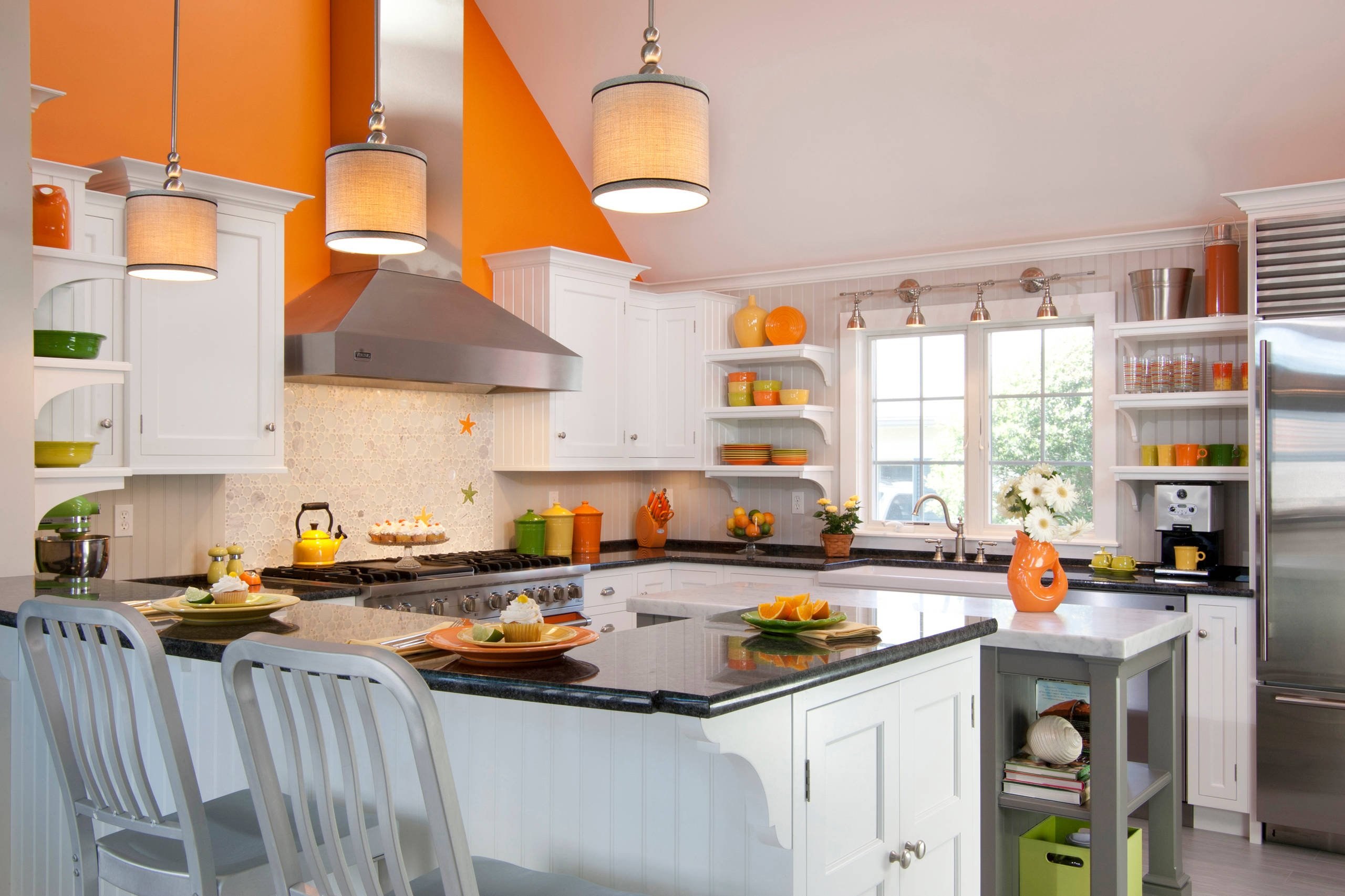 Оранжевые стены на кухне