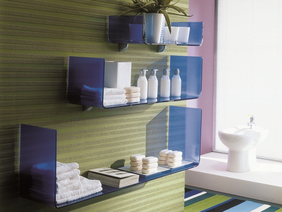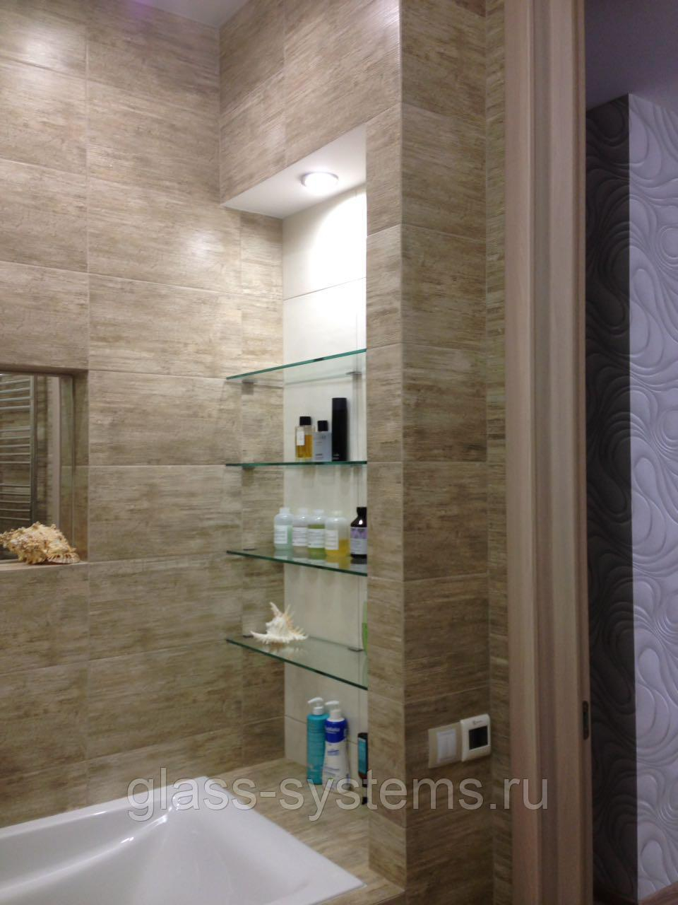 Стеклянные полки в ванную комнату