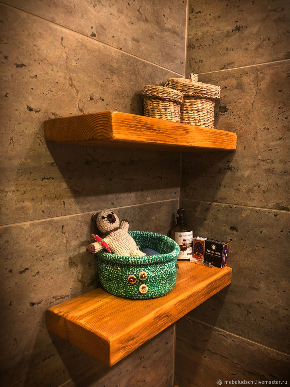 Деревянные полочки в ванную