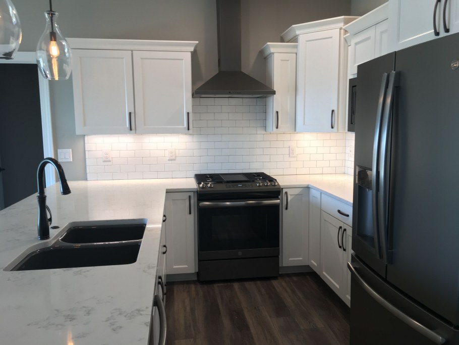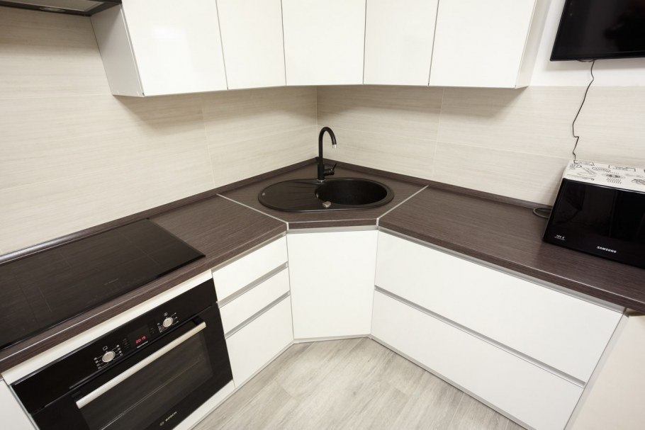 Белые кухни с черной столешницей в интерьере реальные (58 фото)