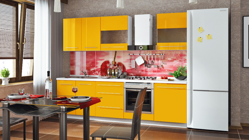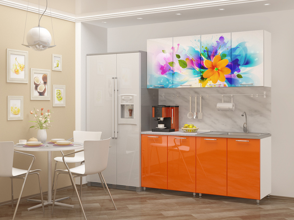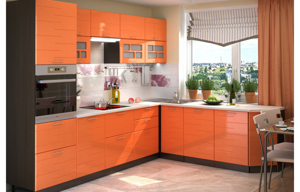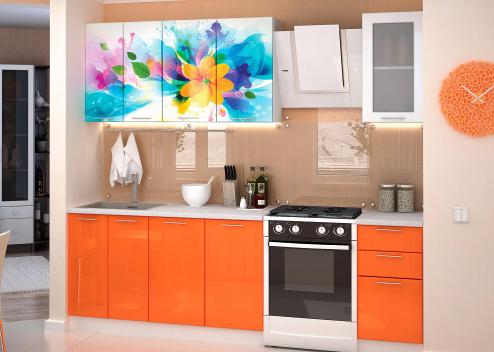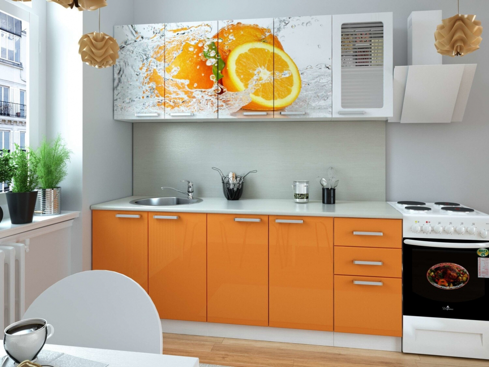 Кухонный гарнитур «Валерия-м» №4 (оранжевый глянец)