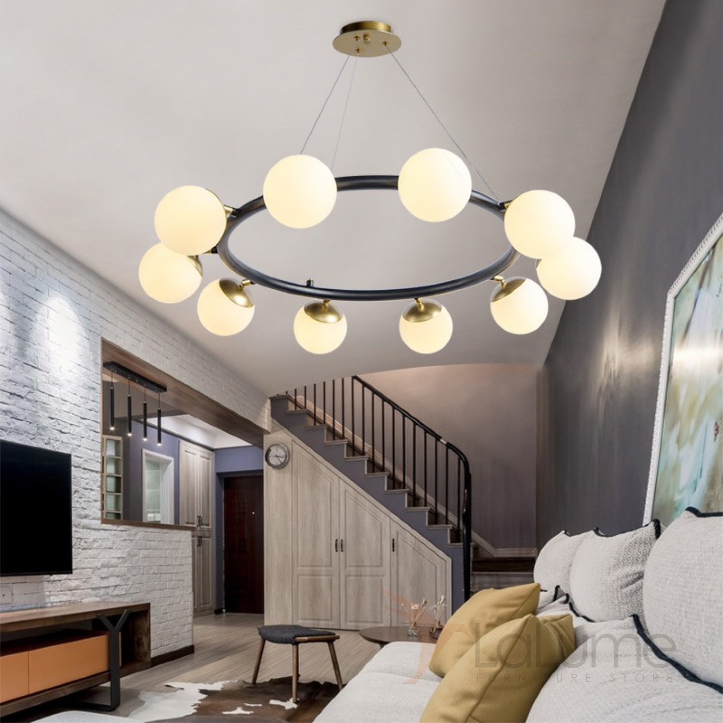 Дизайнерская люстра со стеклянными плафонами на штангах Jesi