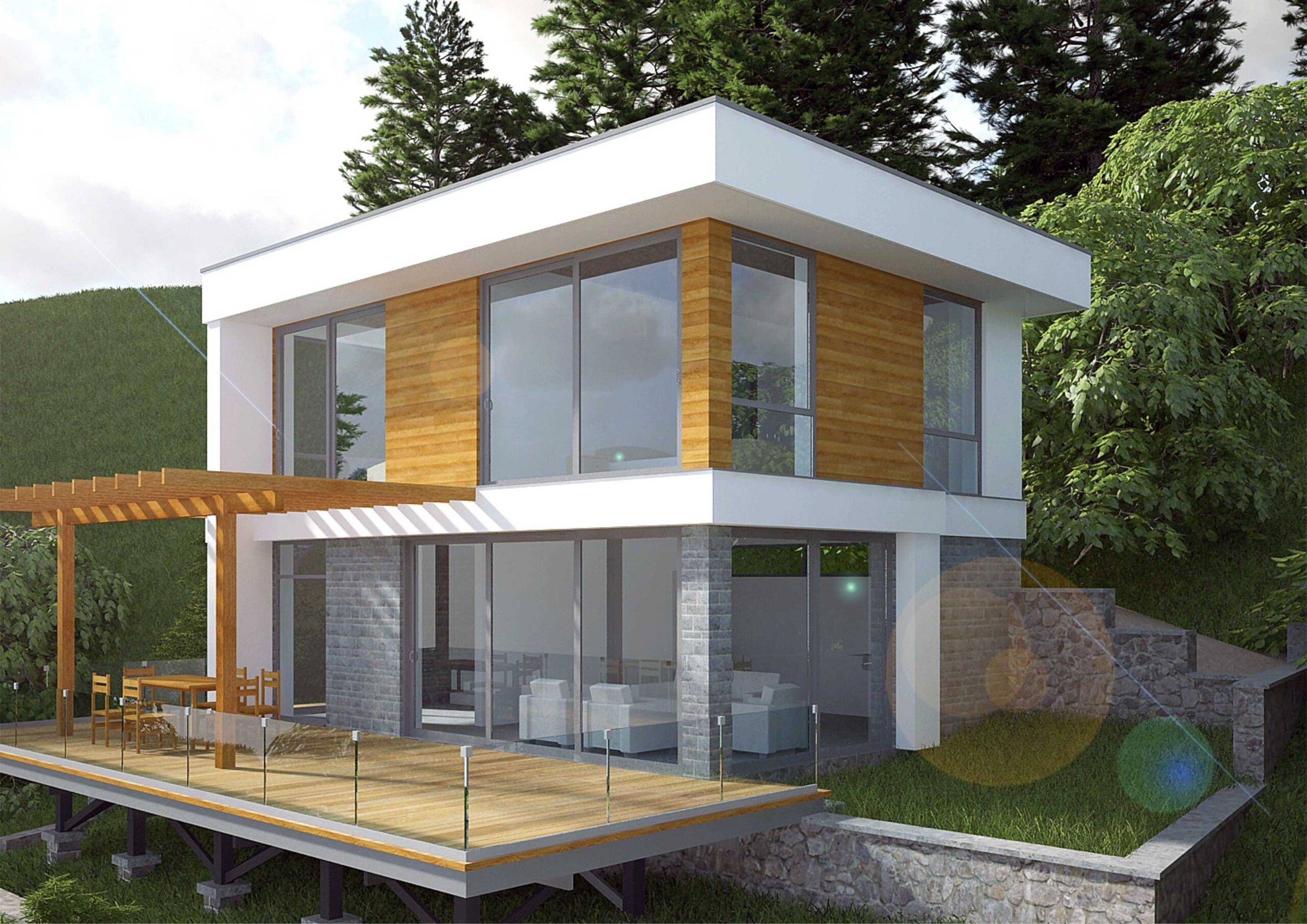 Дом с плоской крышей и панорамными окнами одноэтажный