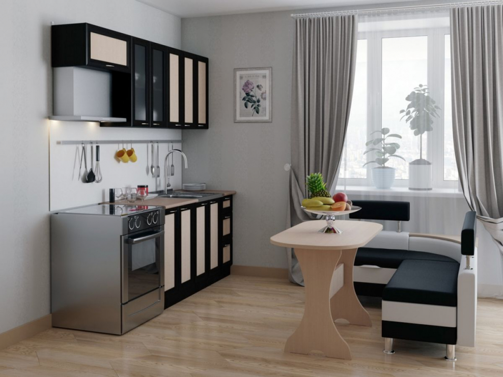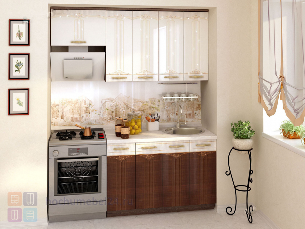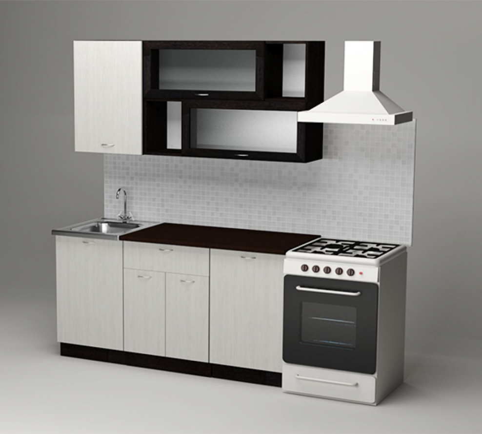 Кухонный гарнитур дачный 1,2м (1.ольха 2.беленый дуб)