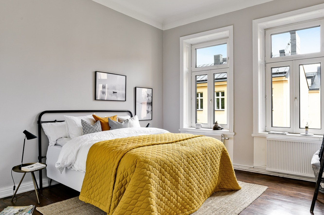 Сочетание с серым цветом в интерьере спальни