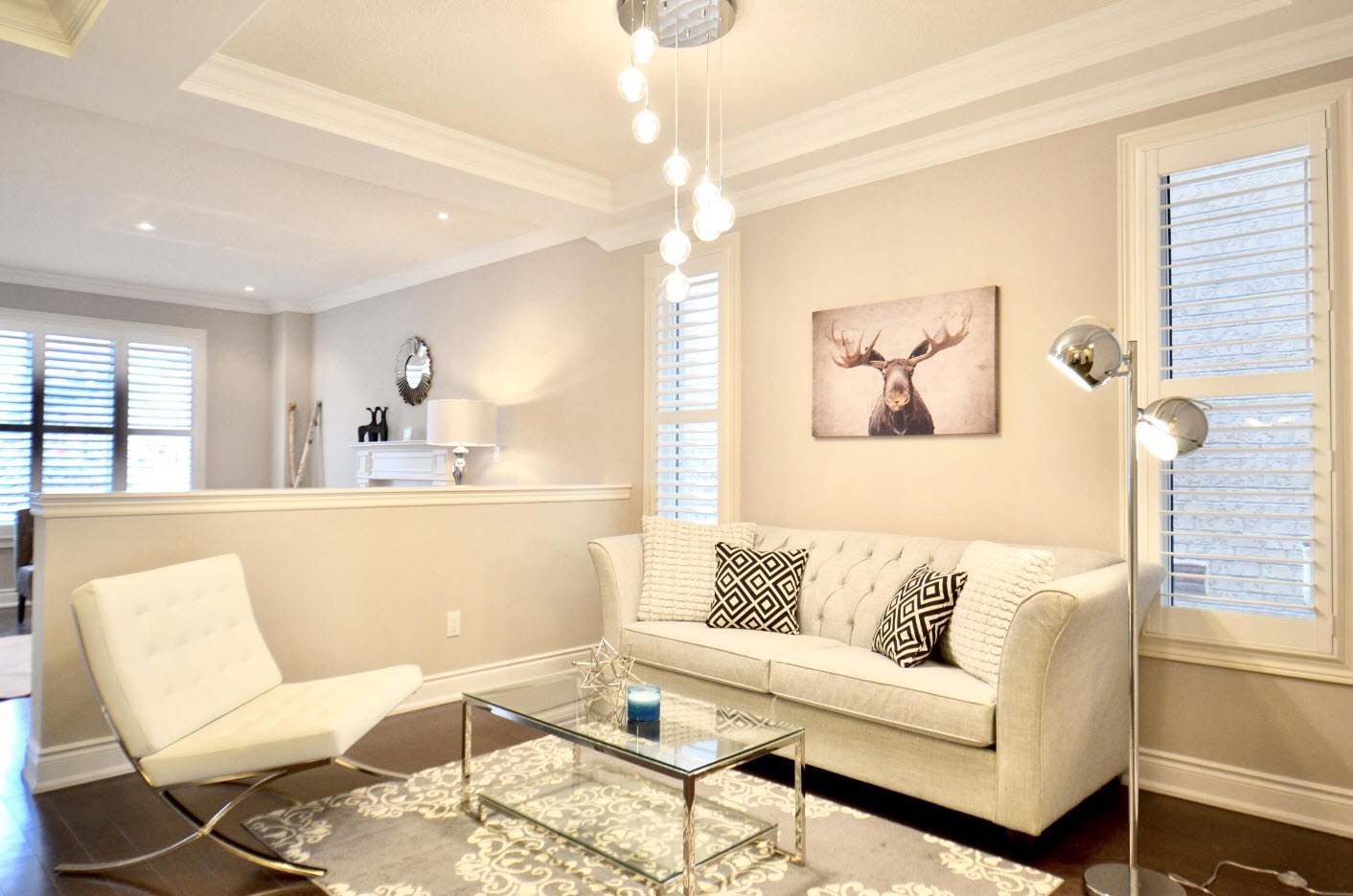 Интерьер гостиной в нюдовых тонах