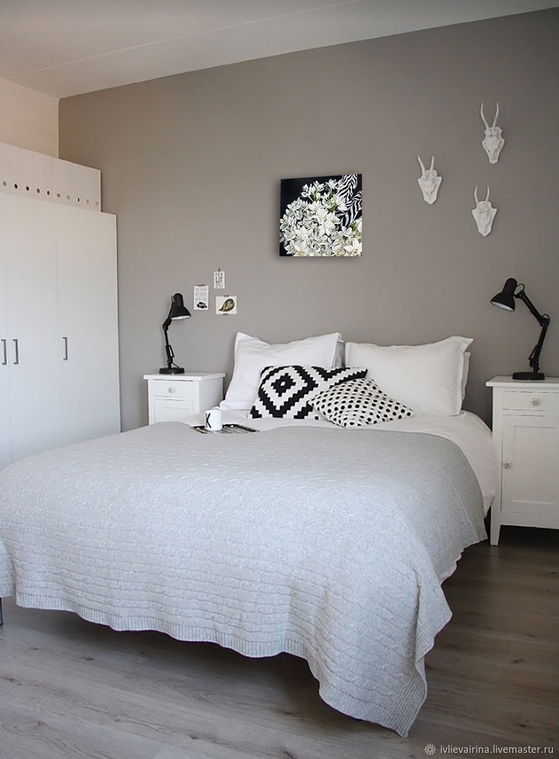 Серые стены в спальне