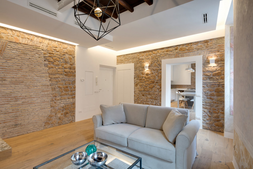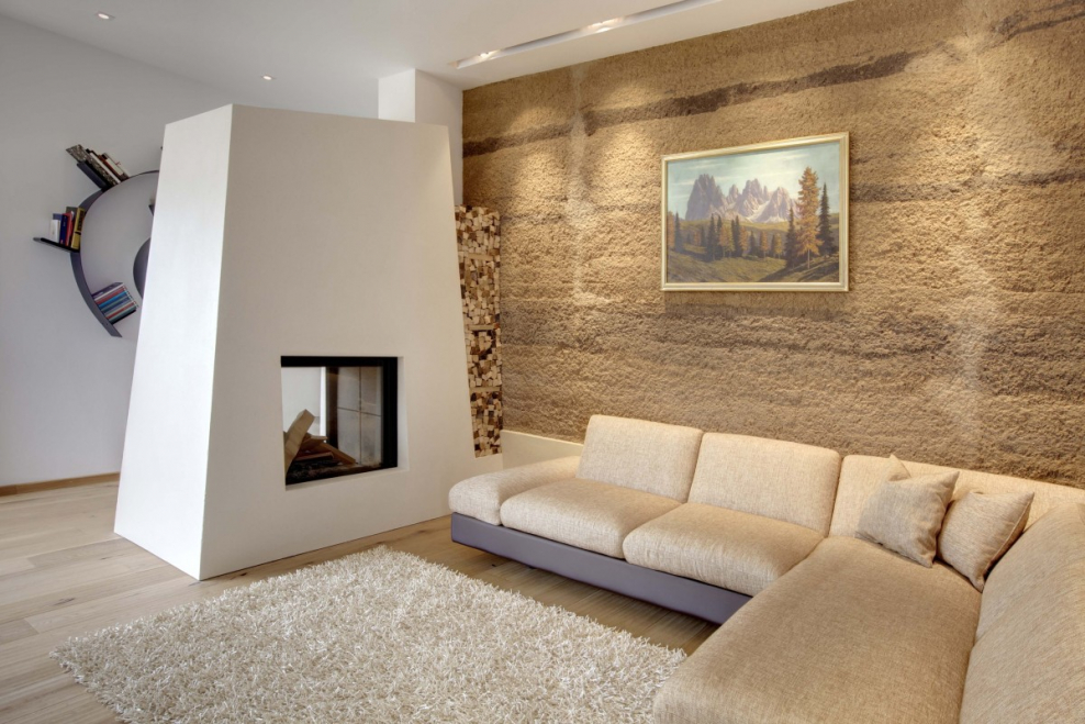 Декоративная штукатурка травертин в интерьере гостиной фото