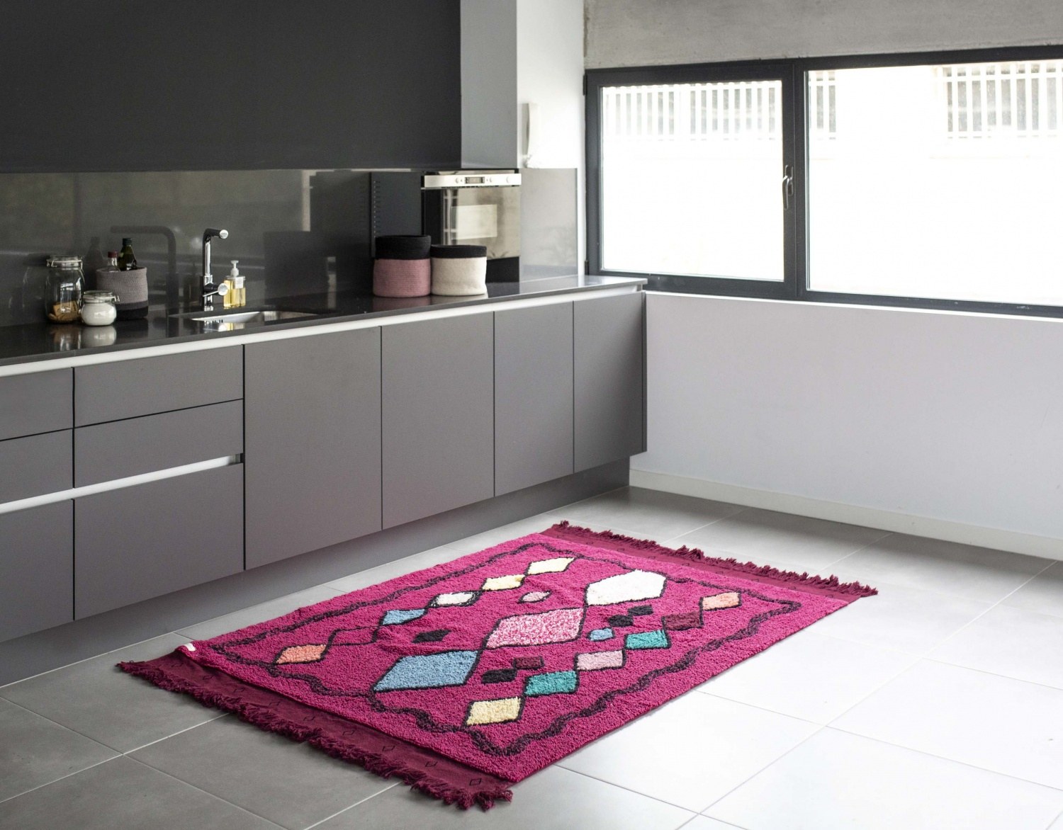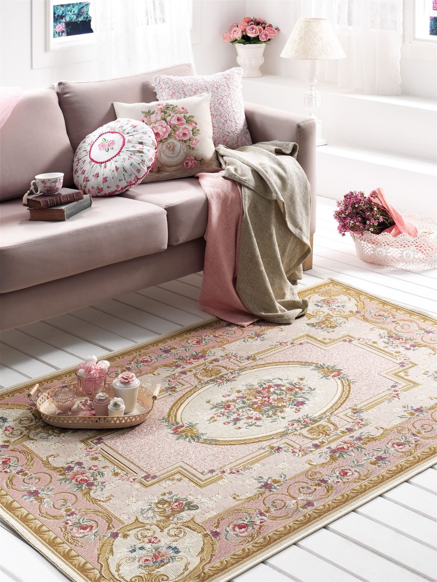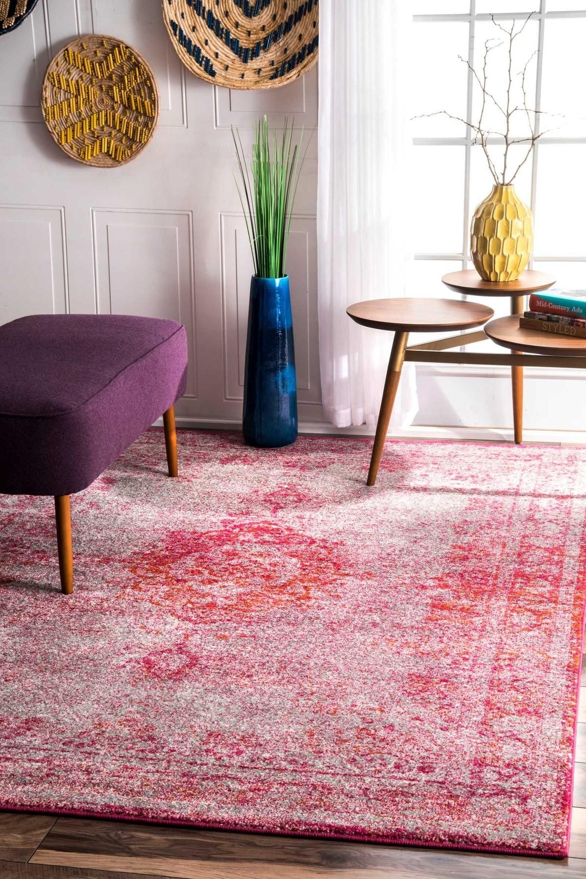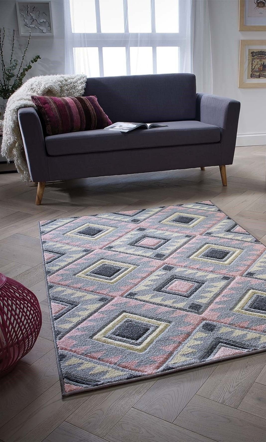 Серо розовый ковер в интерьере (42 фото)