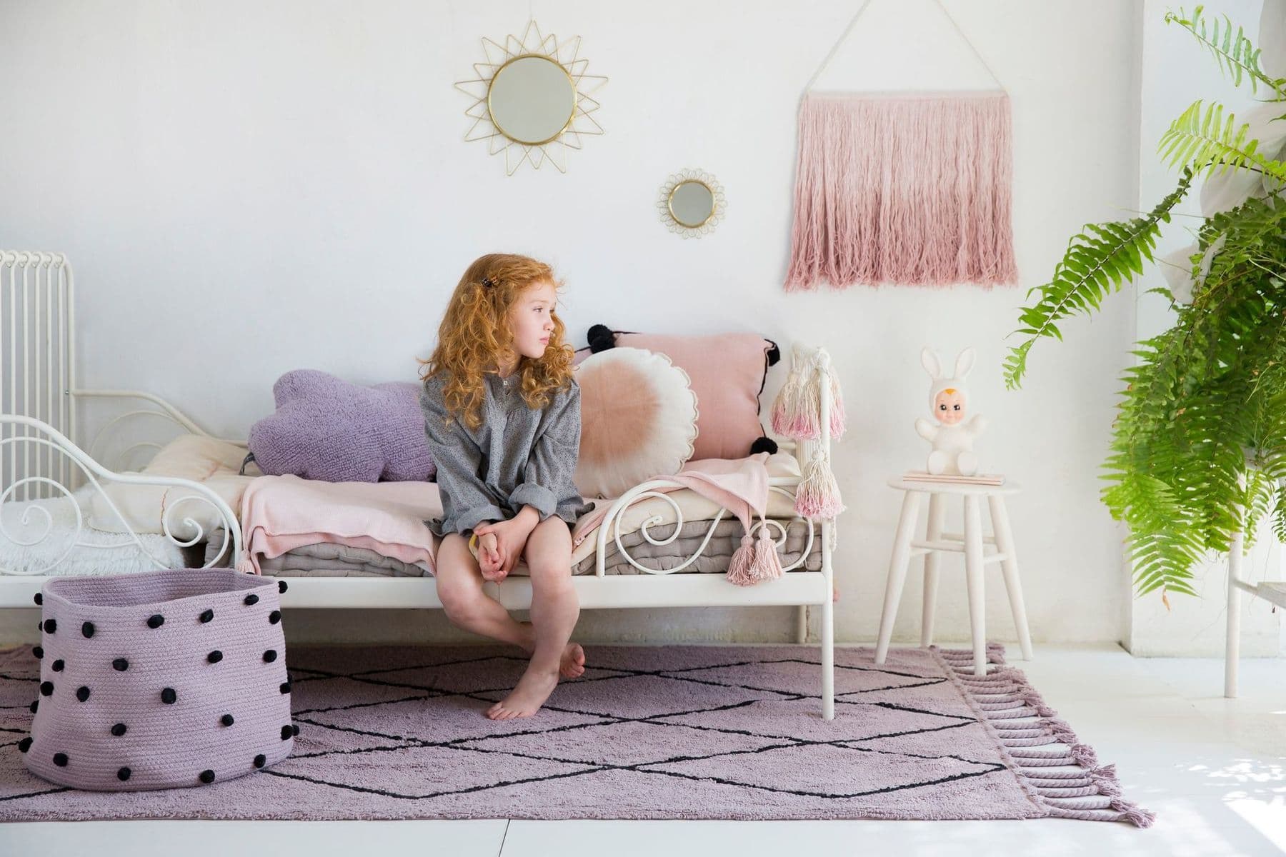 Ковёр серо розовый в спальне