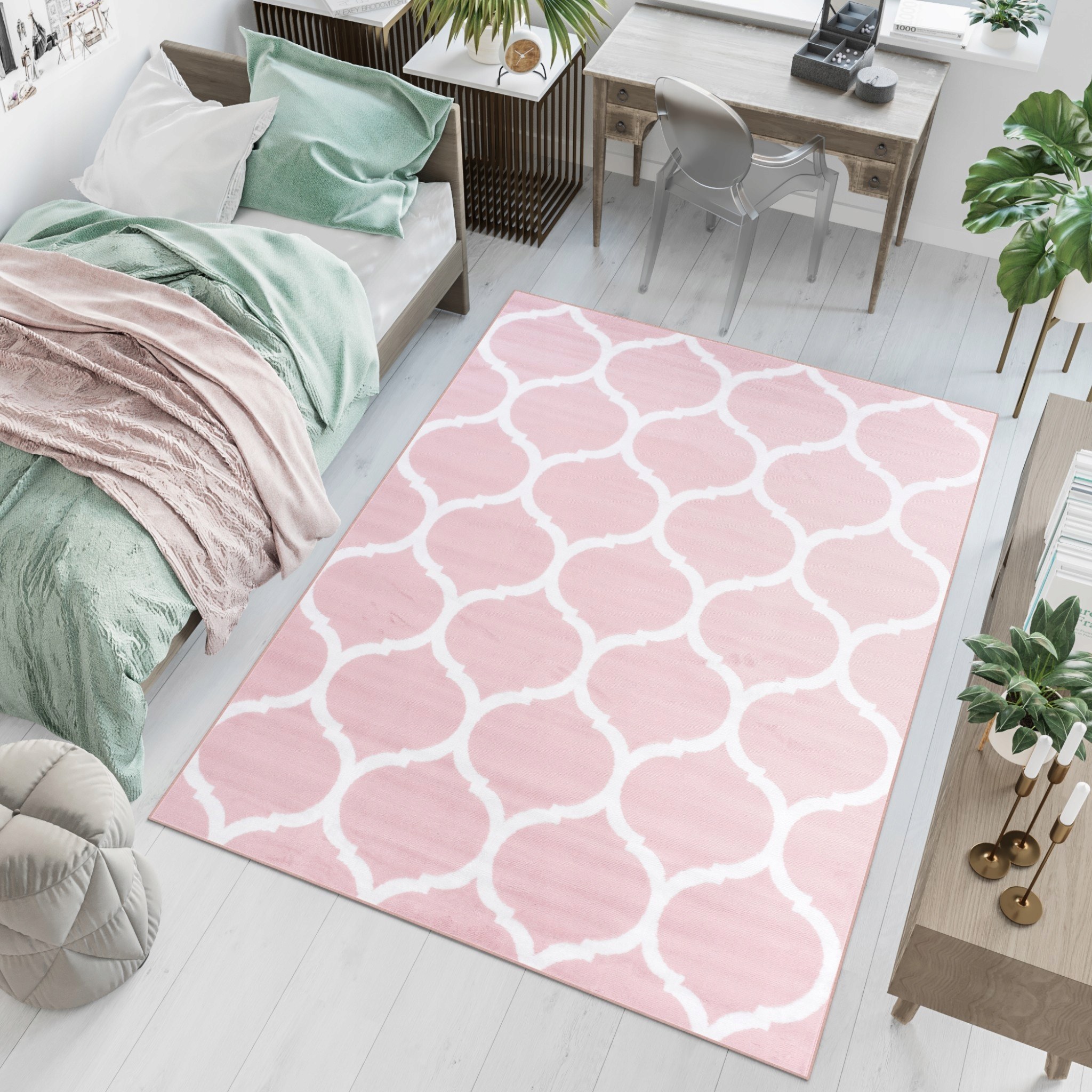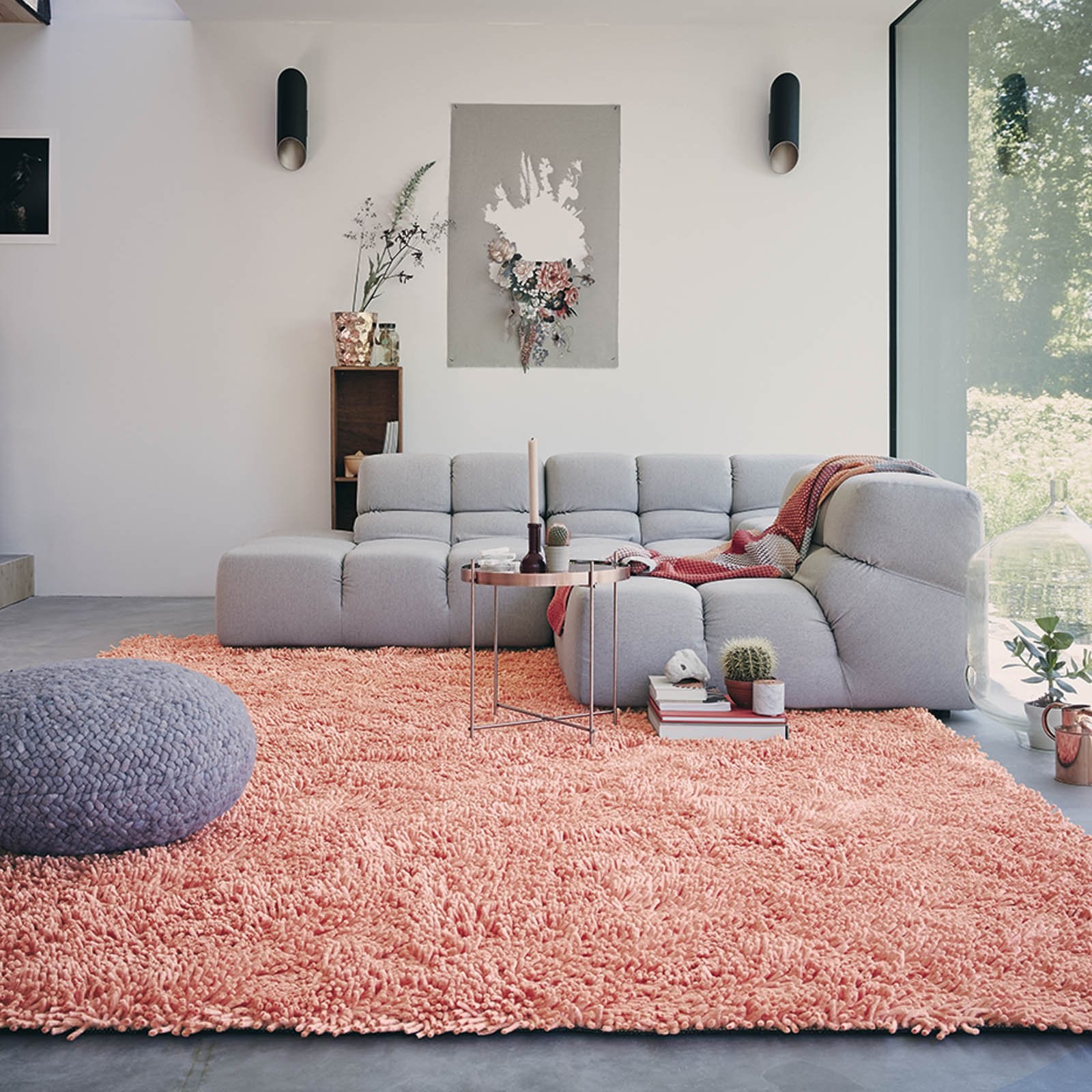 Розоаыы ковер в скандинавском