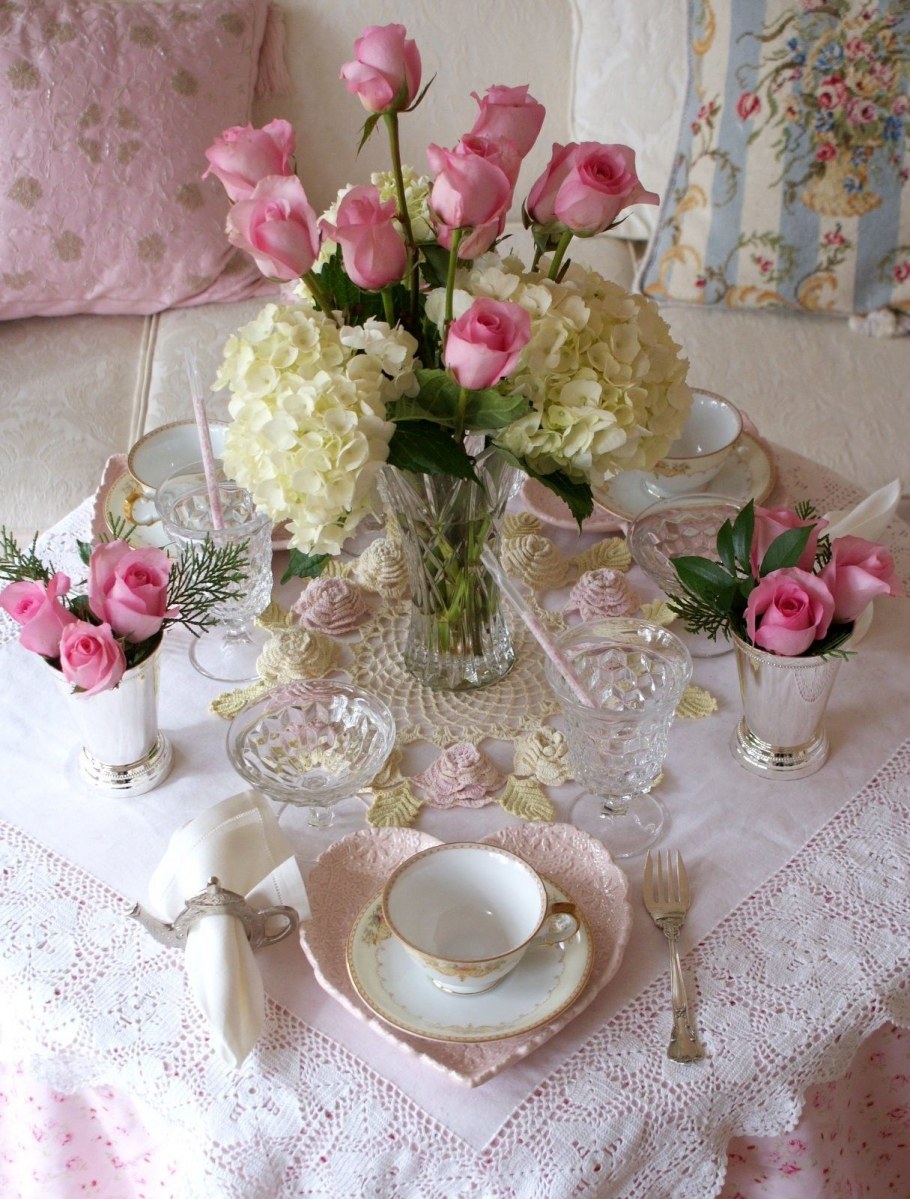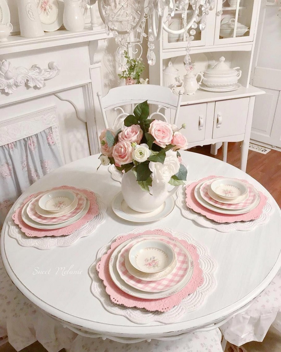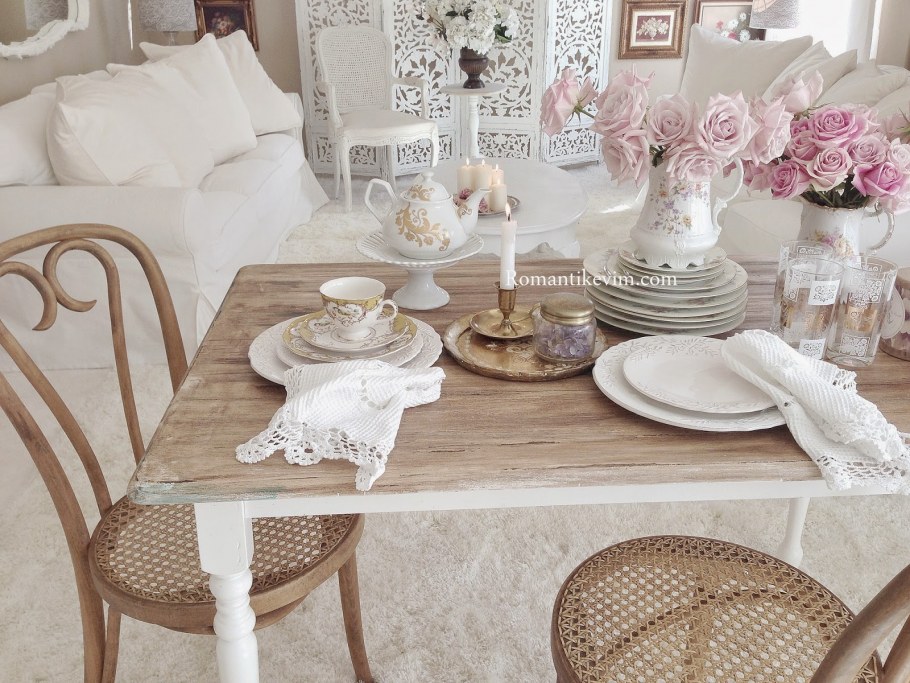 Сервировка стола в стиле шебби шик в интерьере (53 фото)