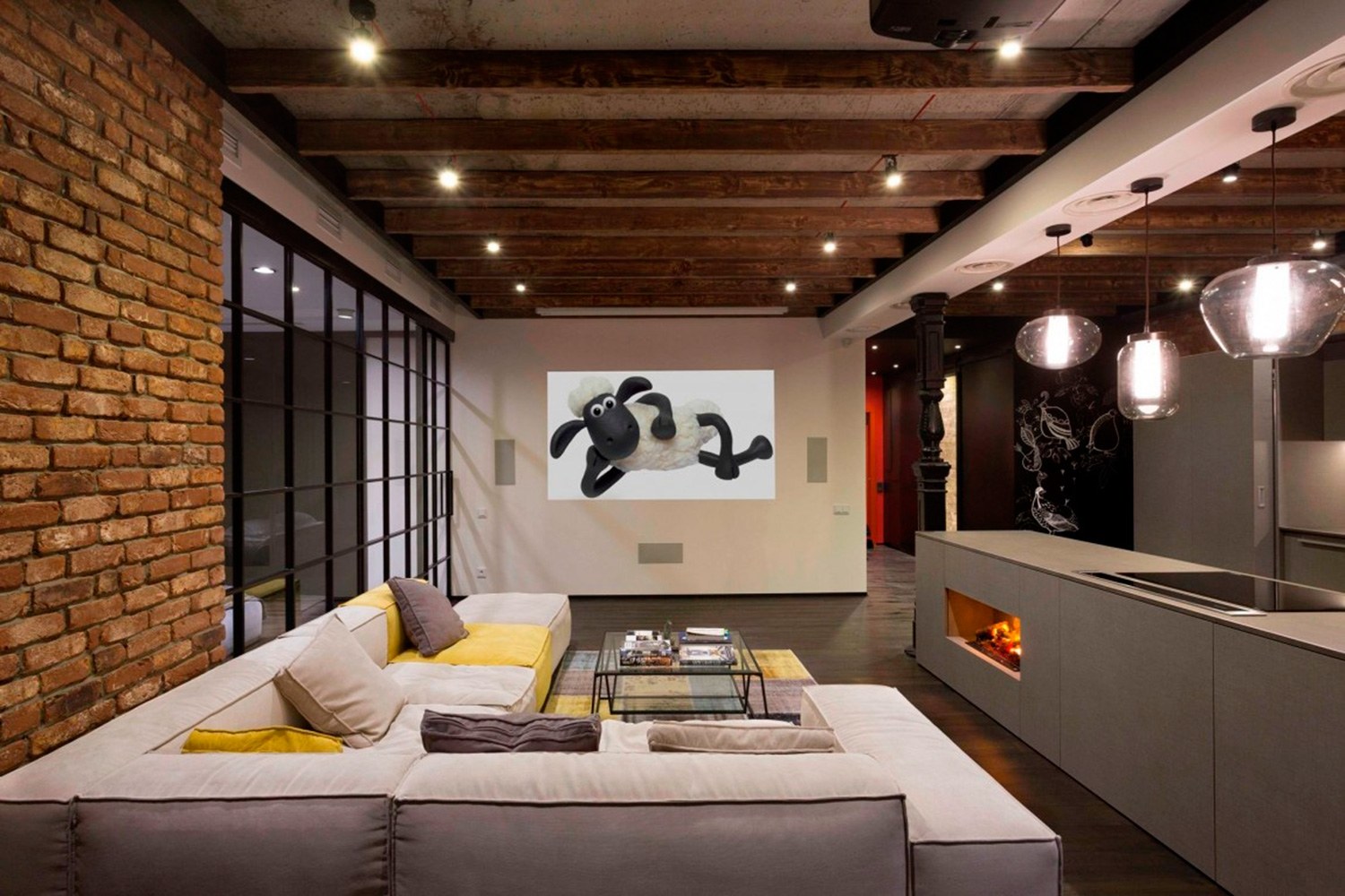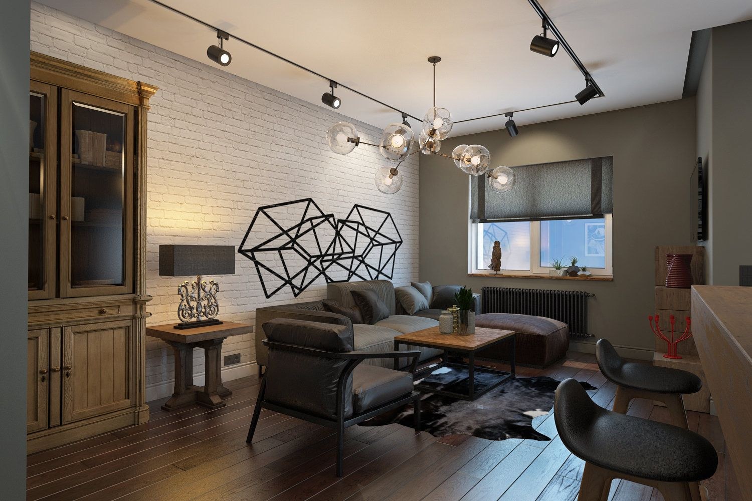 Освещение в гостиной лофт