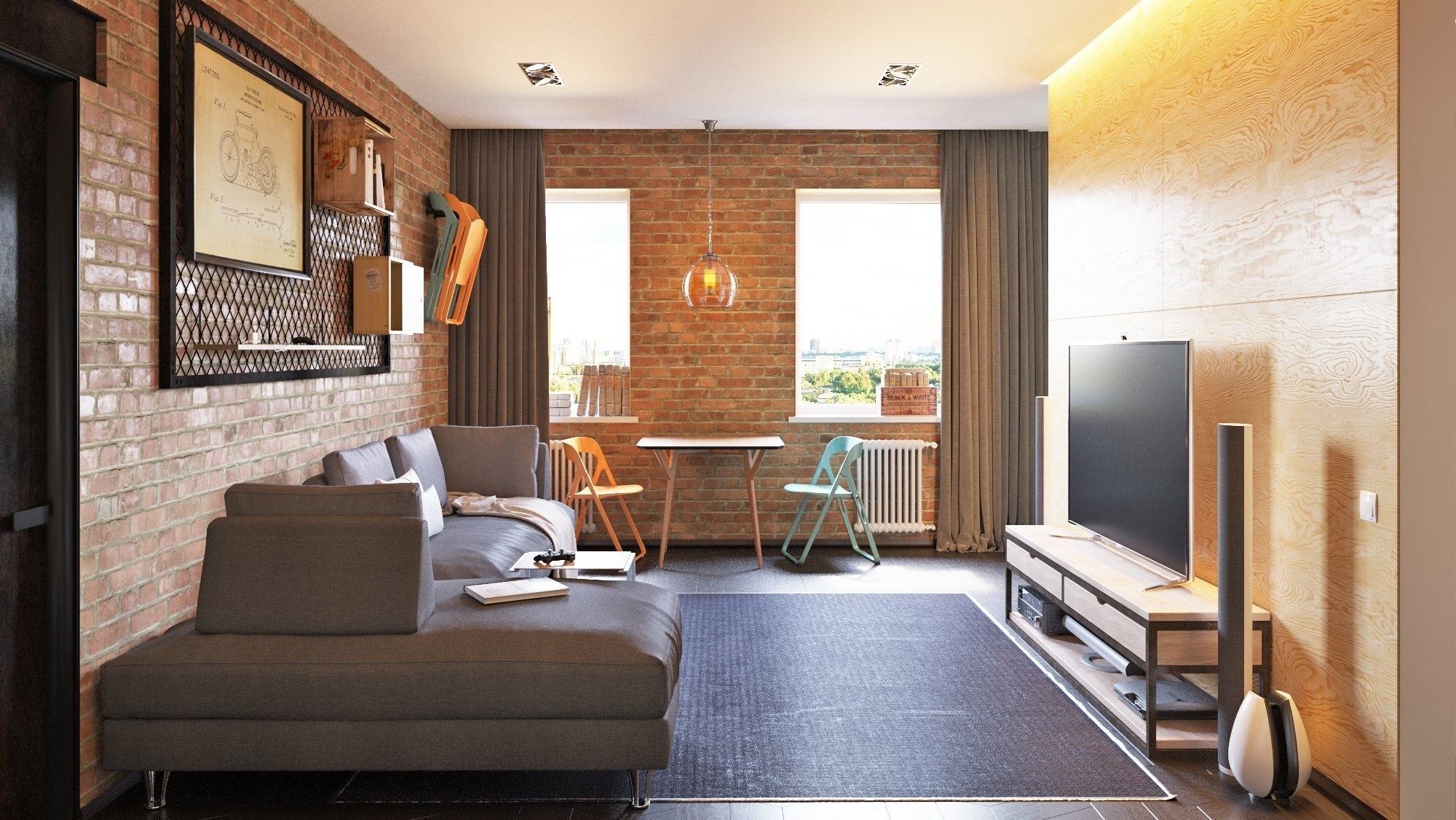 Узкая гостиная в стиле лофт