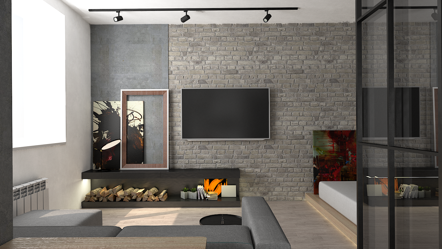 Телевизор в интерьере в стиле лофт