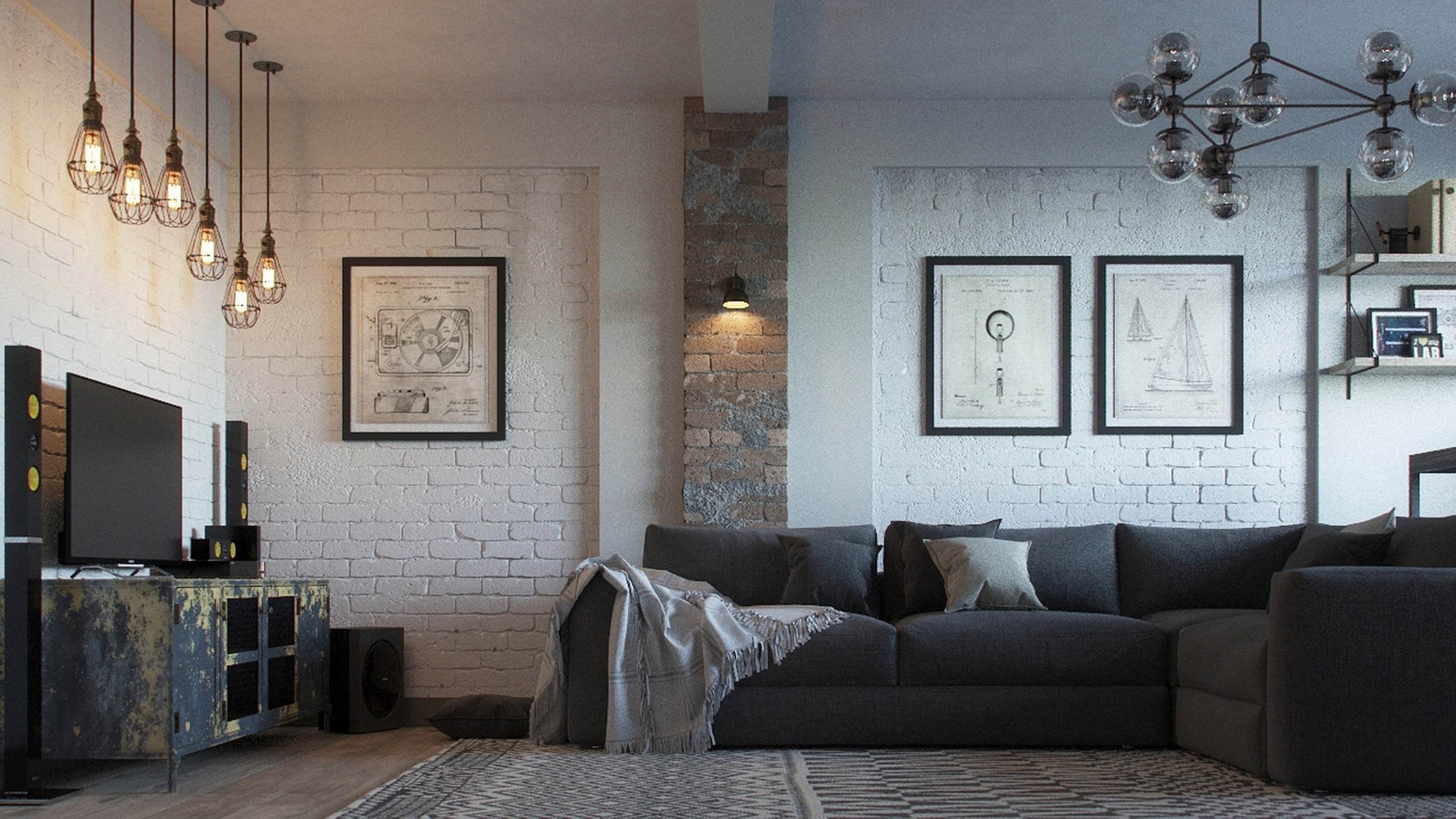 Гостиная в стиле лофт 2020