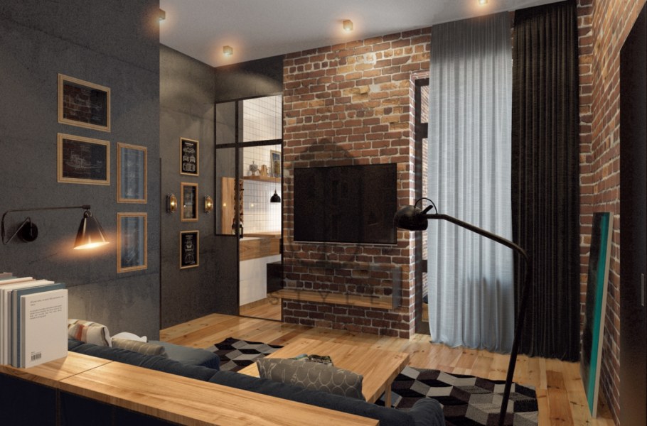 Гостиная лофт 16 кв м