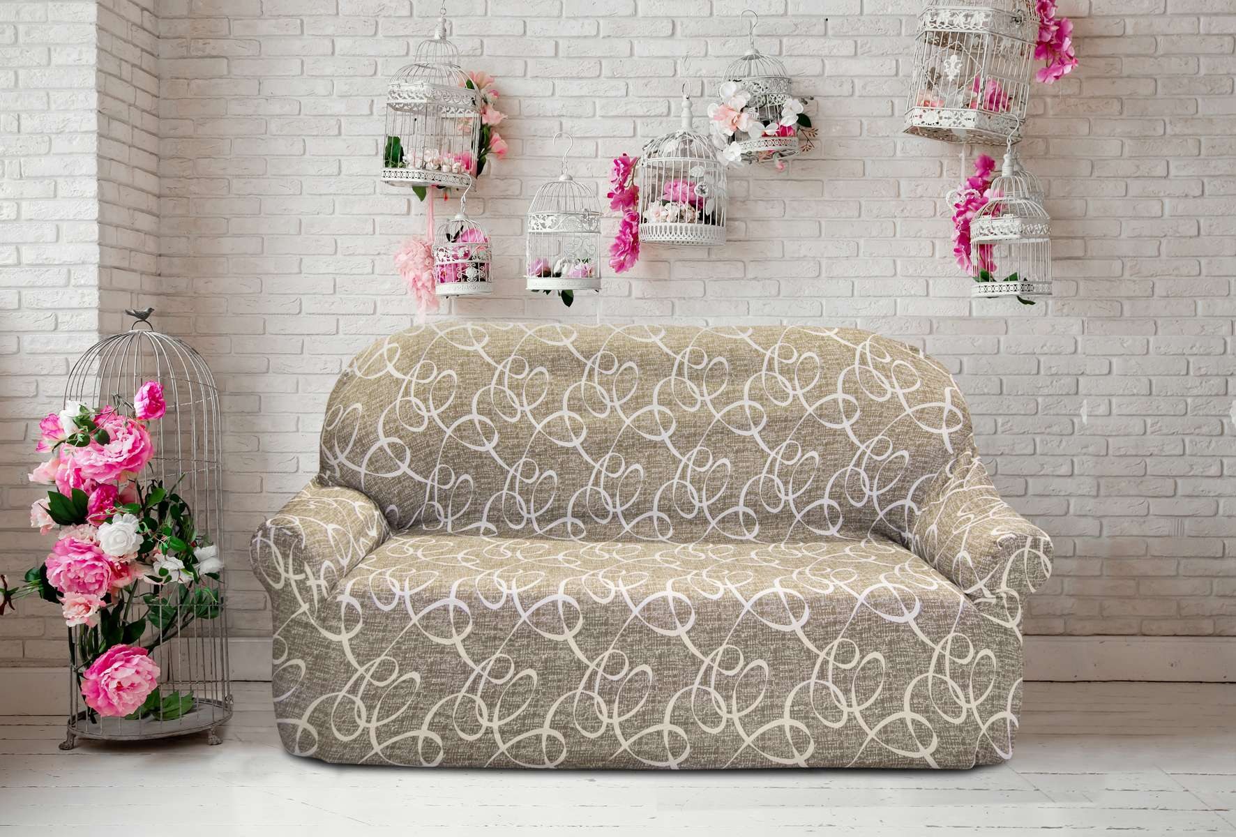 Ибица - беж. Европейский чехол "Belmarti" на диван без подлокотников