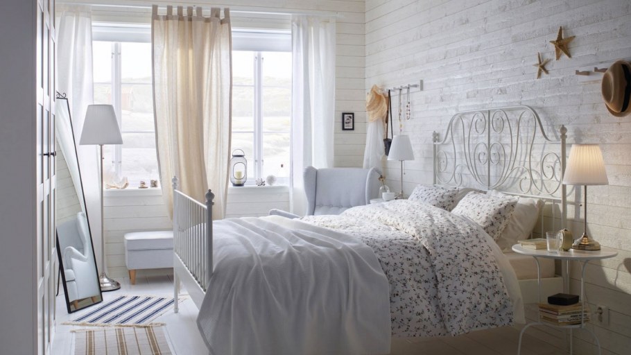 Интерьер спальни с кроватью икеа ЛЕЙРВИК