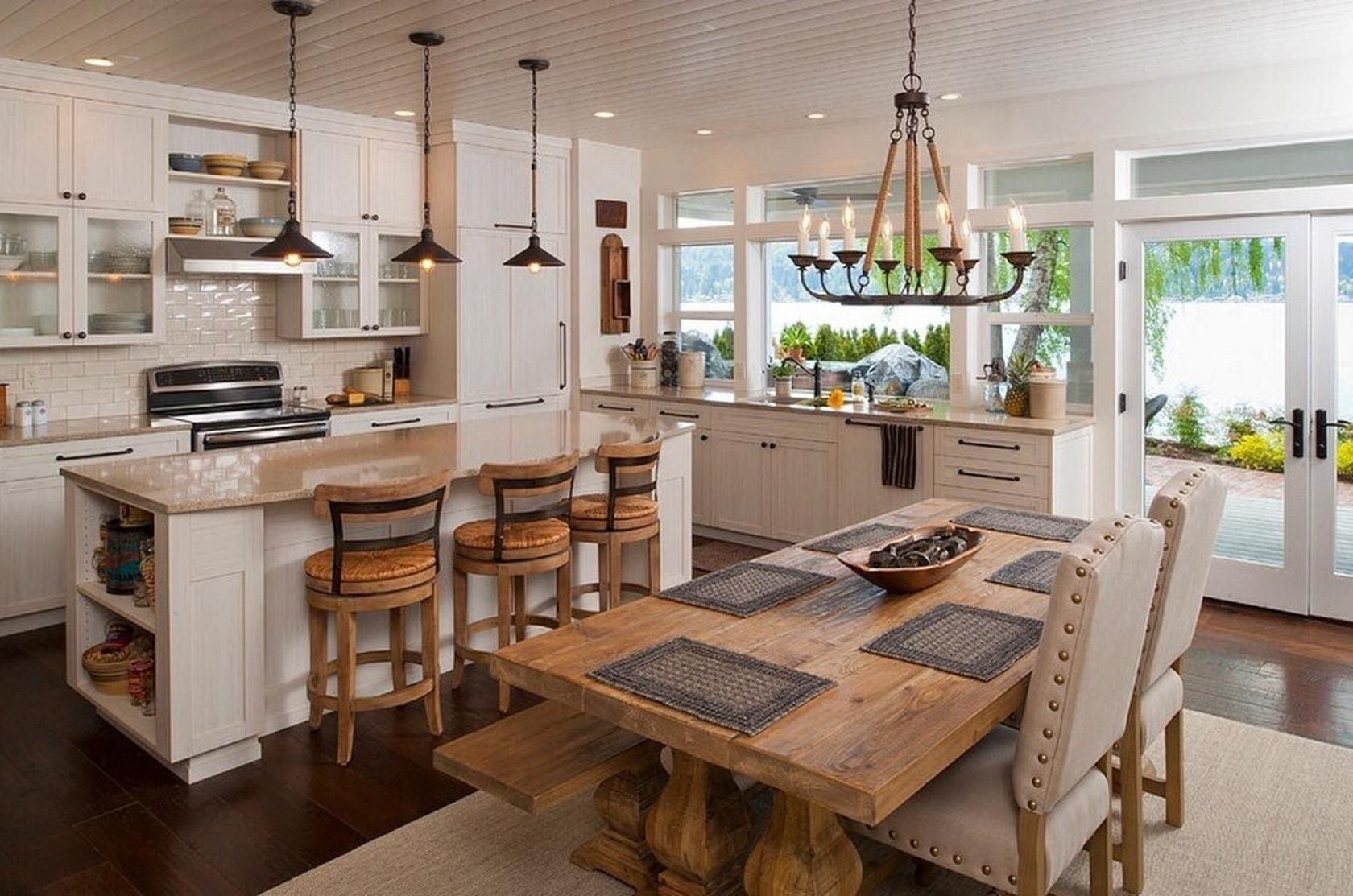 Дизайн кухни столовой в доме (40 фото)