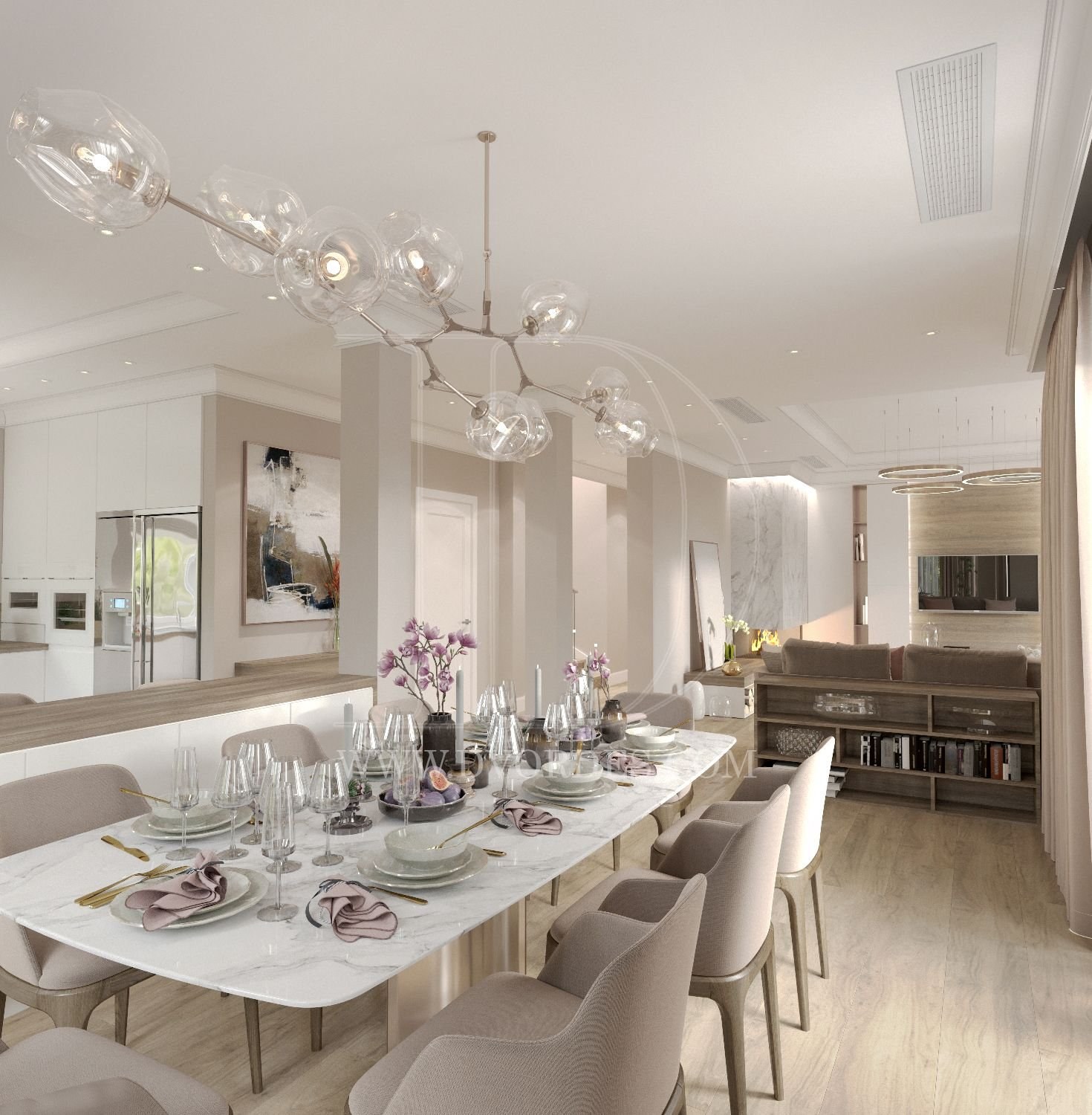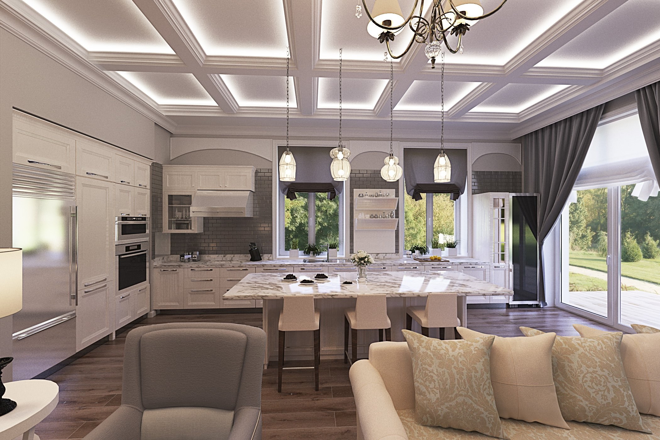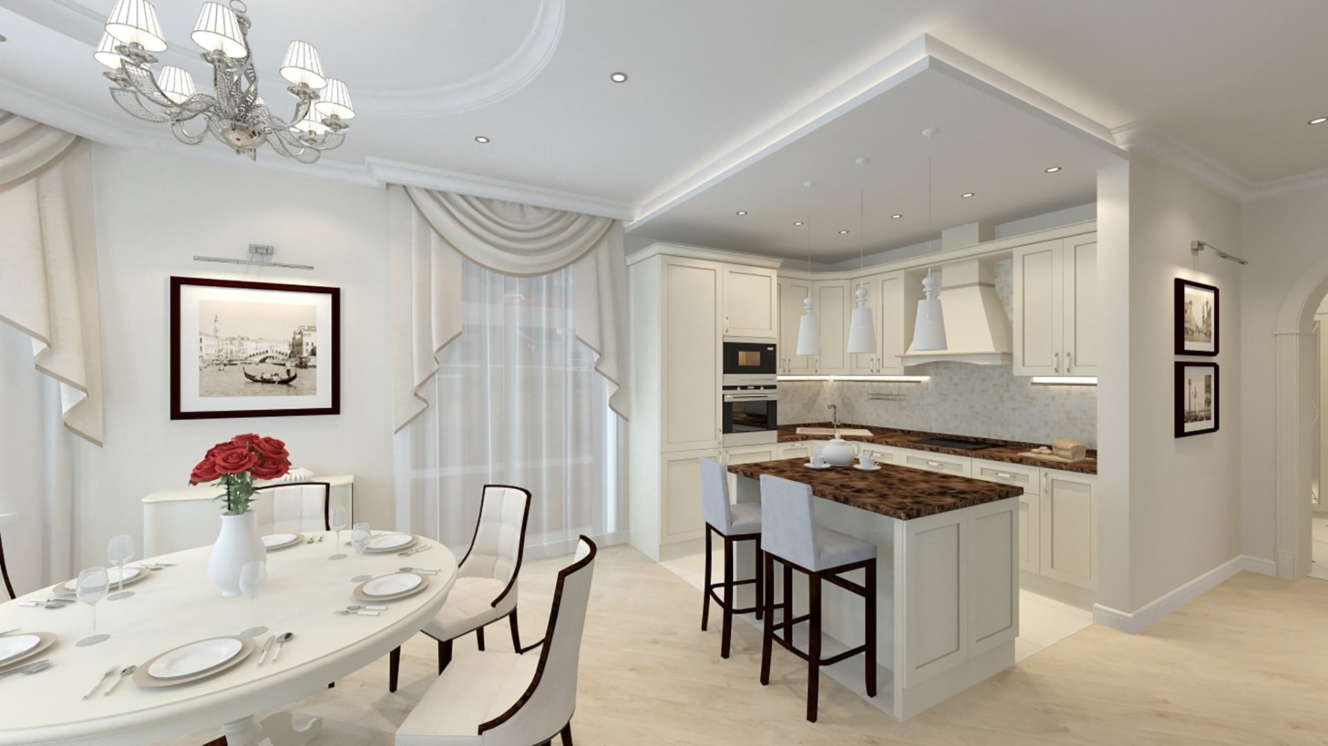 Кухня столовая гостиная в стиле Неоклассика
