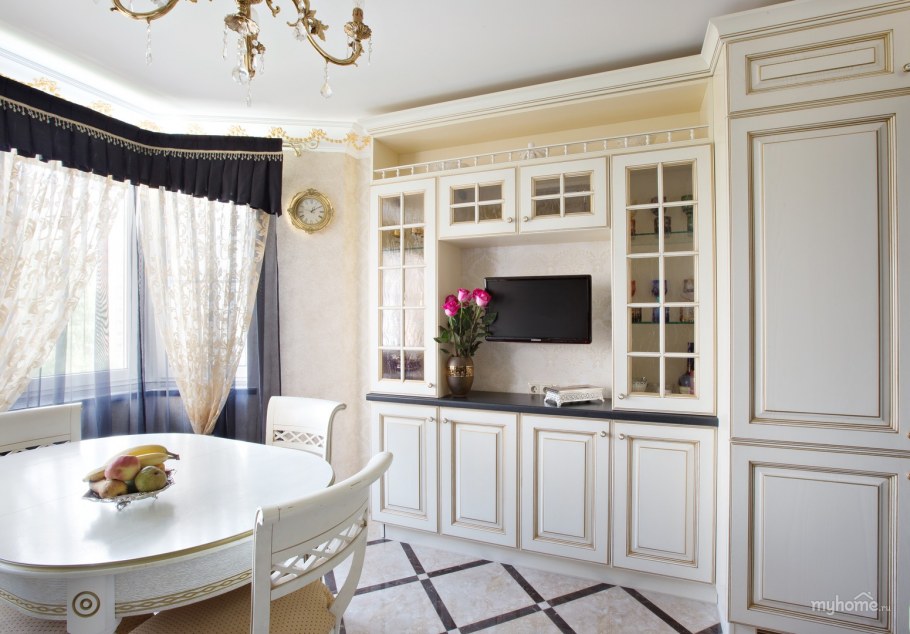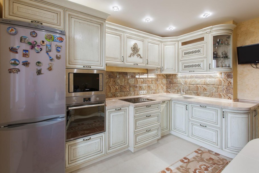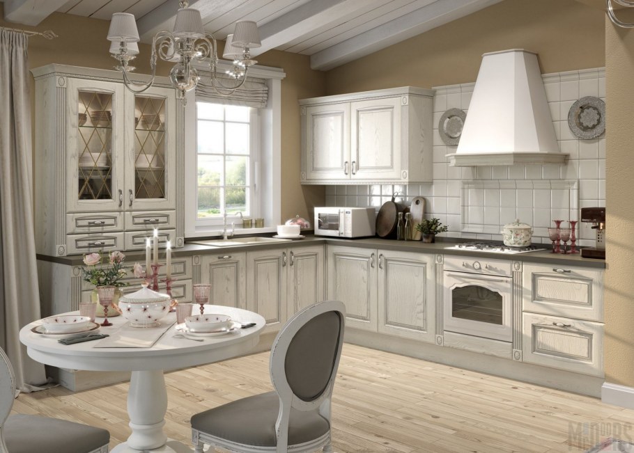 Интерьер классической кухни в светлых тонах угловая (55 фото)