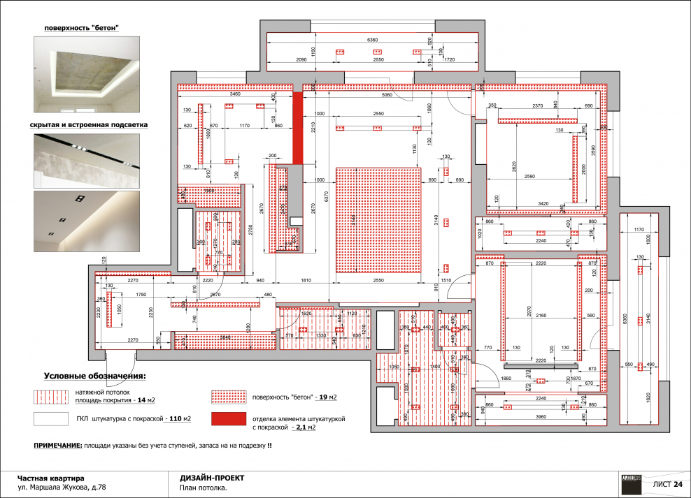 Иногда потолок может стать главным акцентом интерьера. В одном из лофт-проектов мы оставили балки на виду, подчеркнув их чёрным металлическим профилем и дополнив точечными светильниками. Такой ход подчеркнул характер помещения, сохранив его индустриальную основу. При этом планировка потолка была тщательно продумана с учётом расположения мебели и маршрутов передвижения, чтобы свет не слепил и равномерно распределялся по комнате.