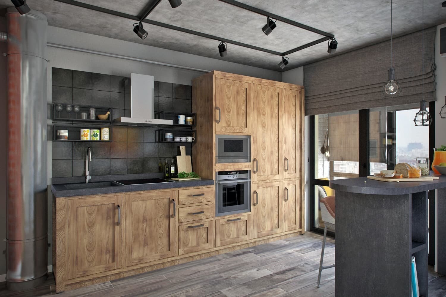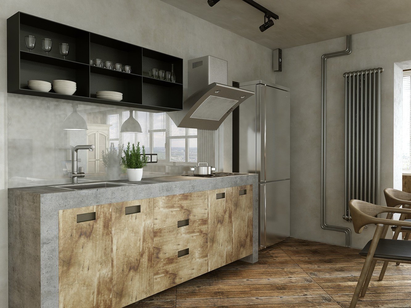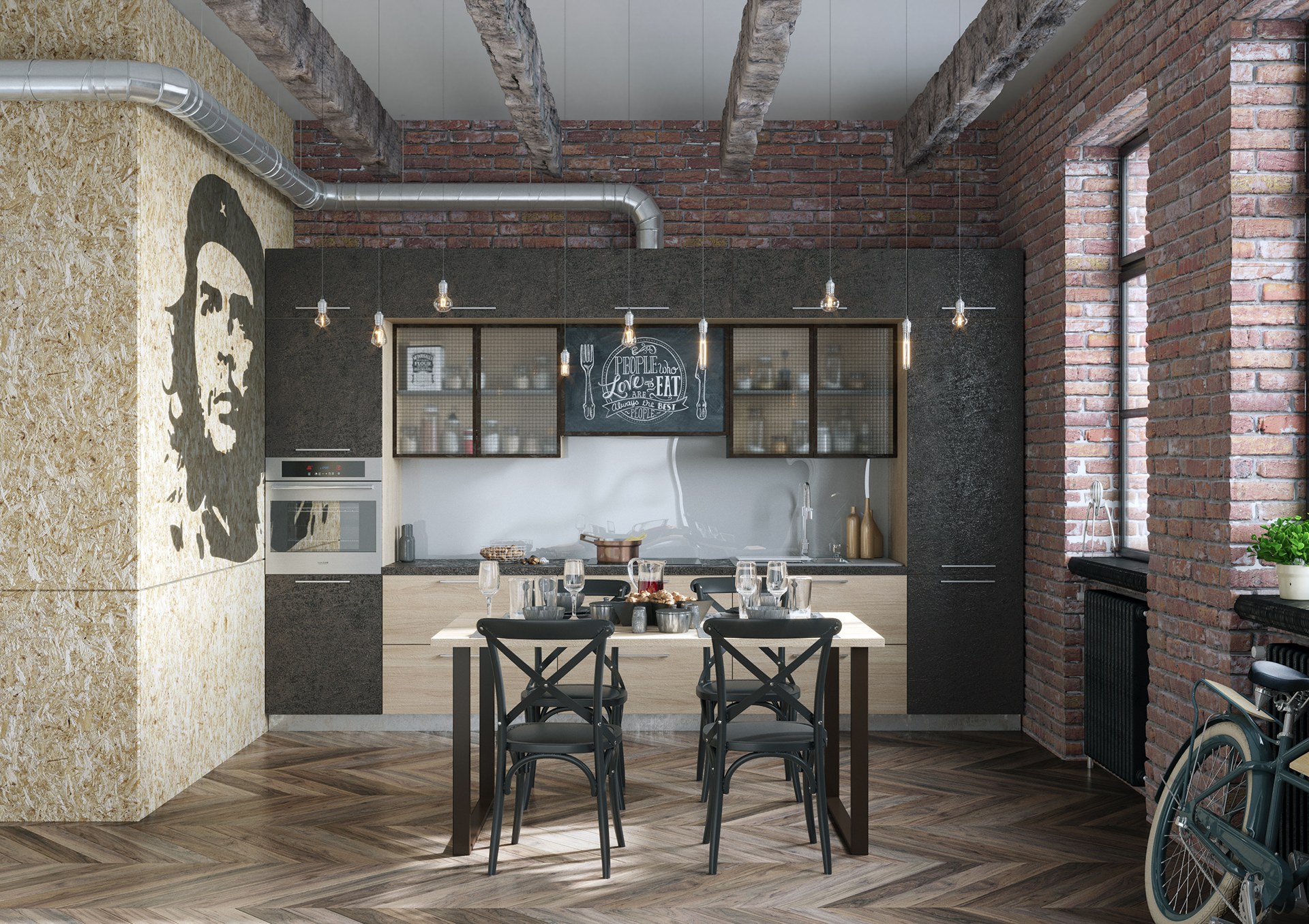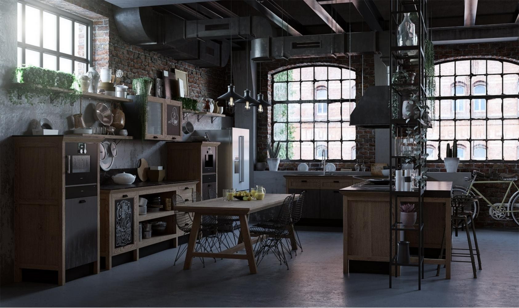Кухонная мебель в стиле лофт в интерьере (54 фото)