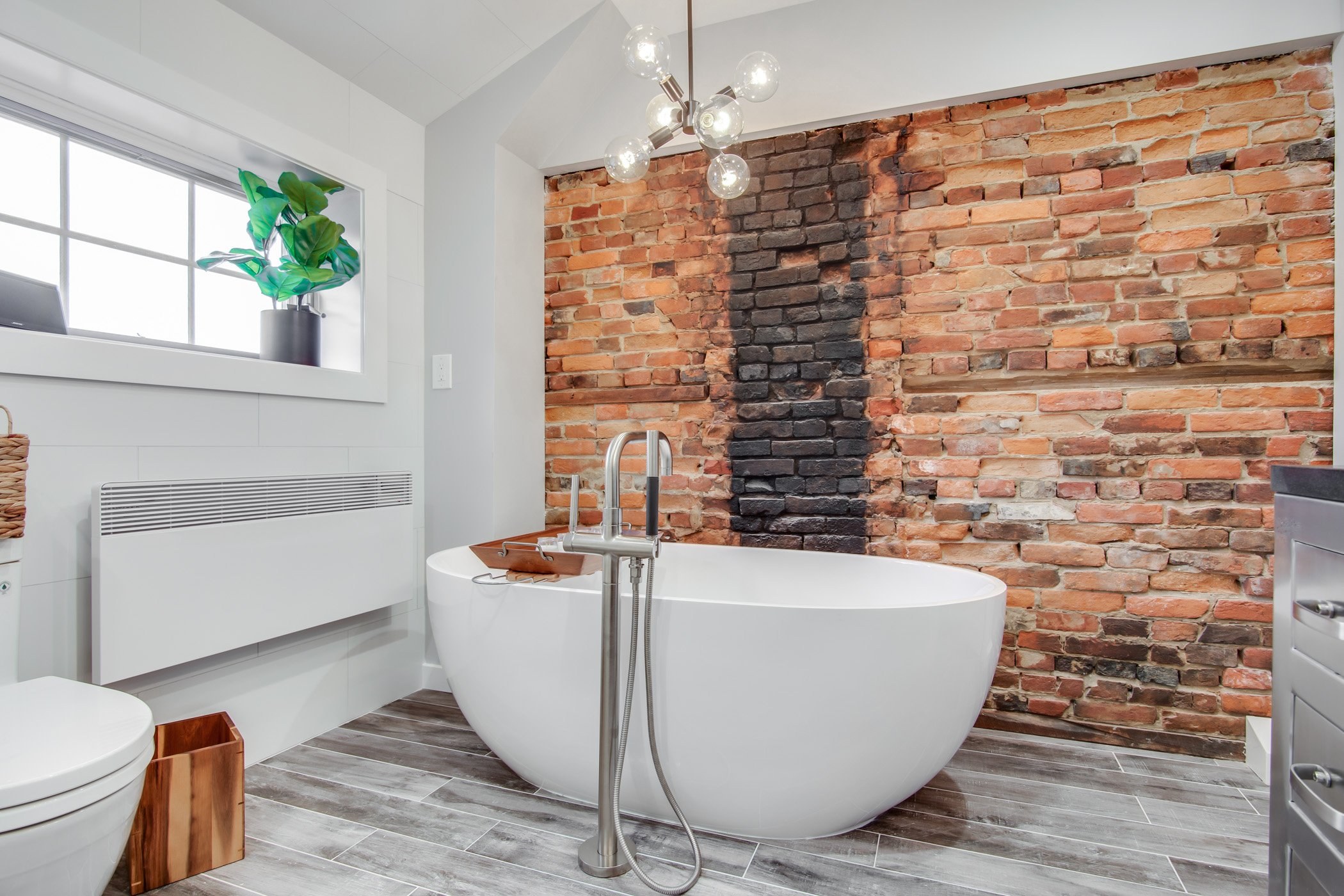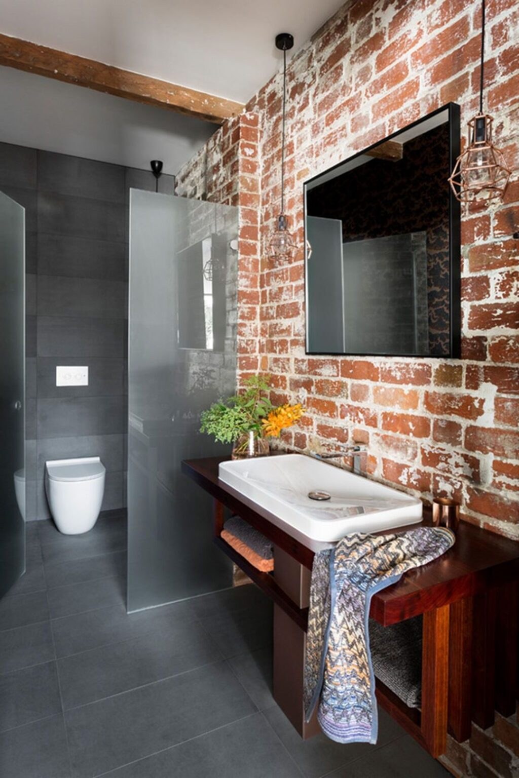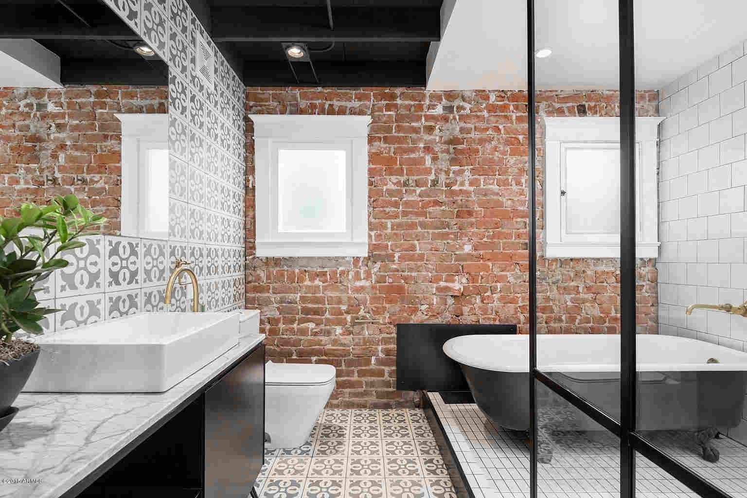 Ванная с кирпичной стеной