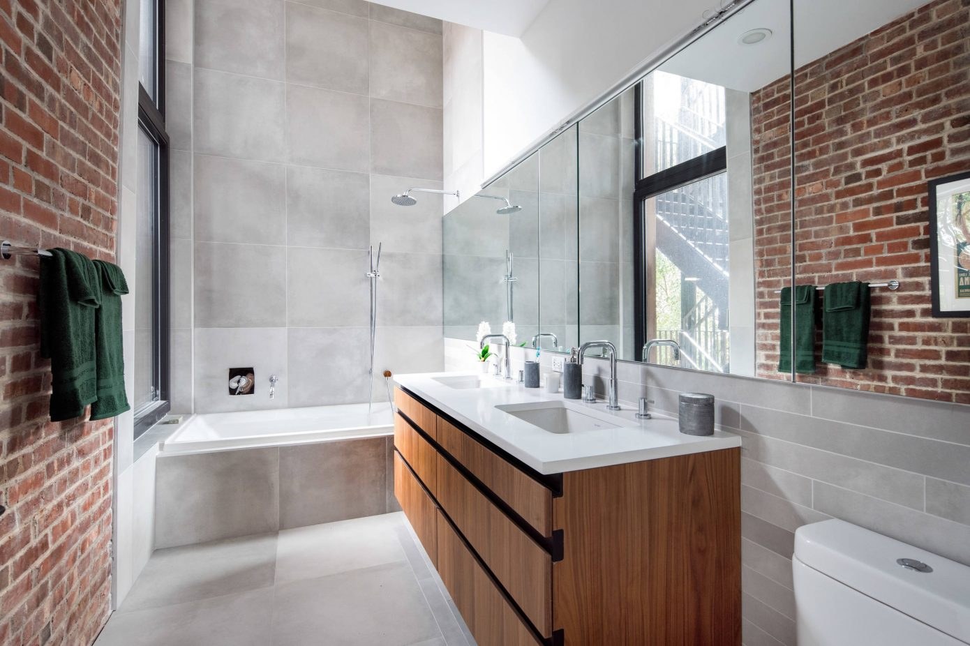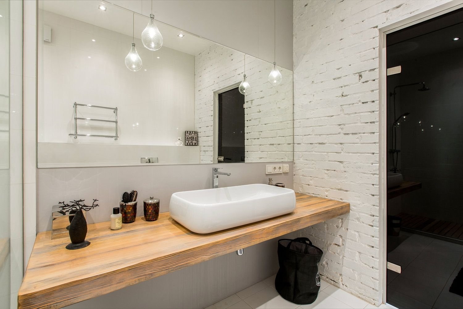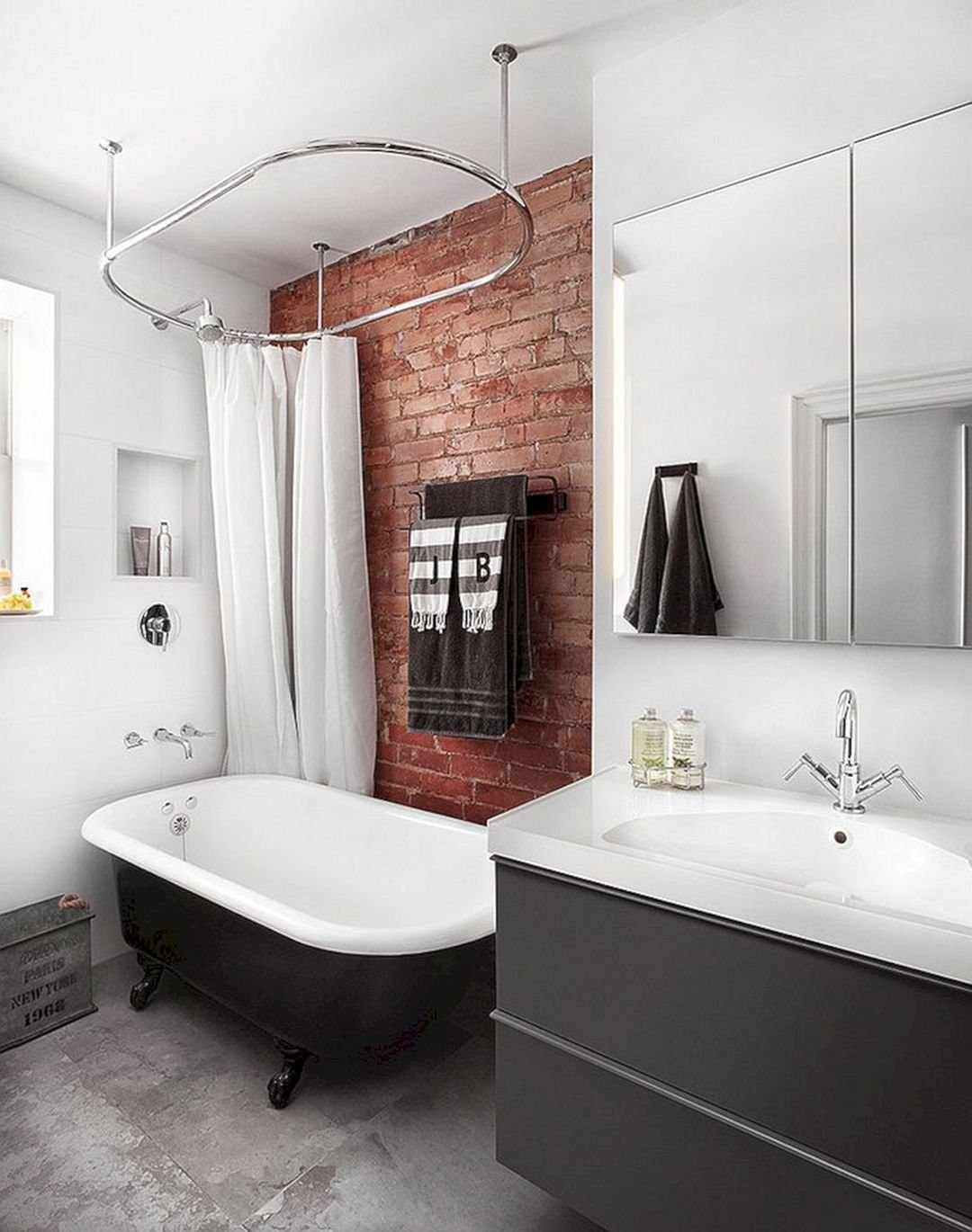 Ванная с кирпичной стеной
