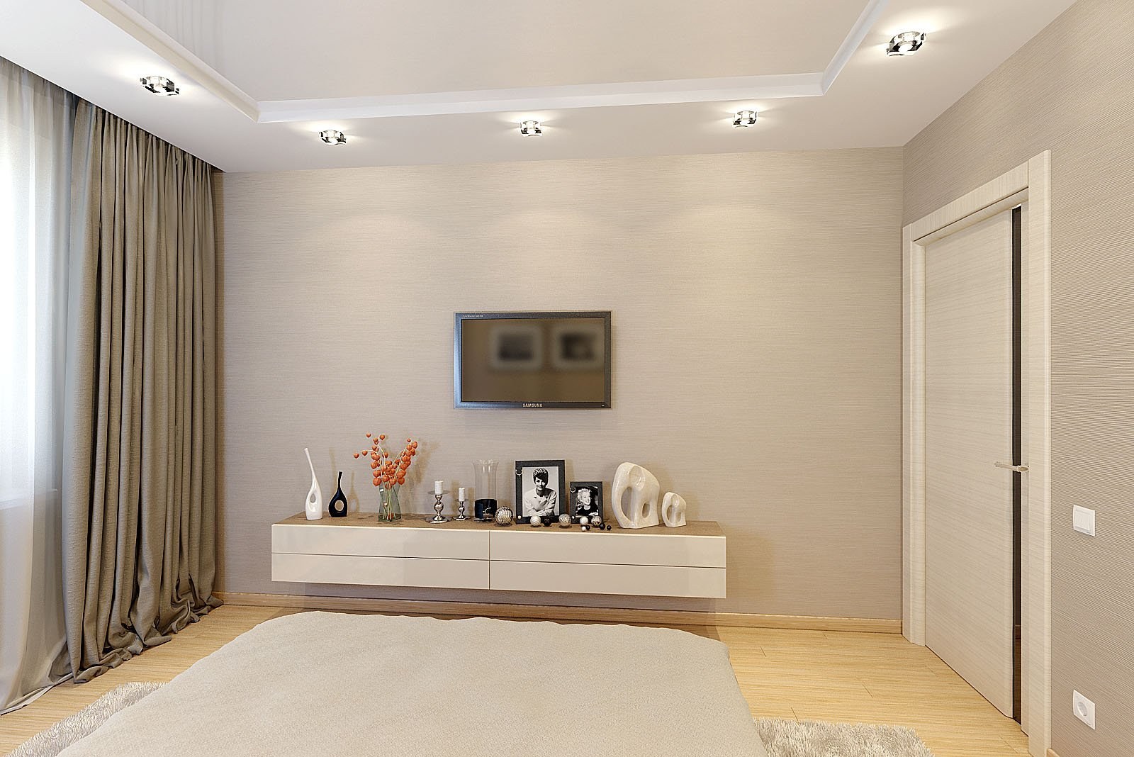 Интерьер зала с бежевыми обоями