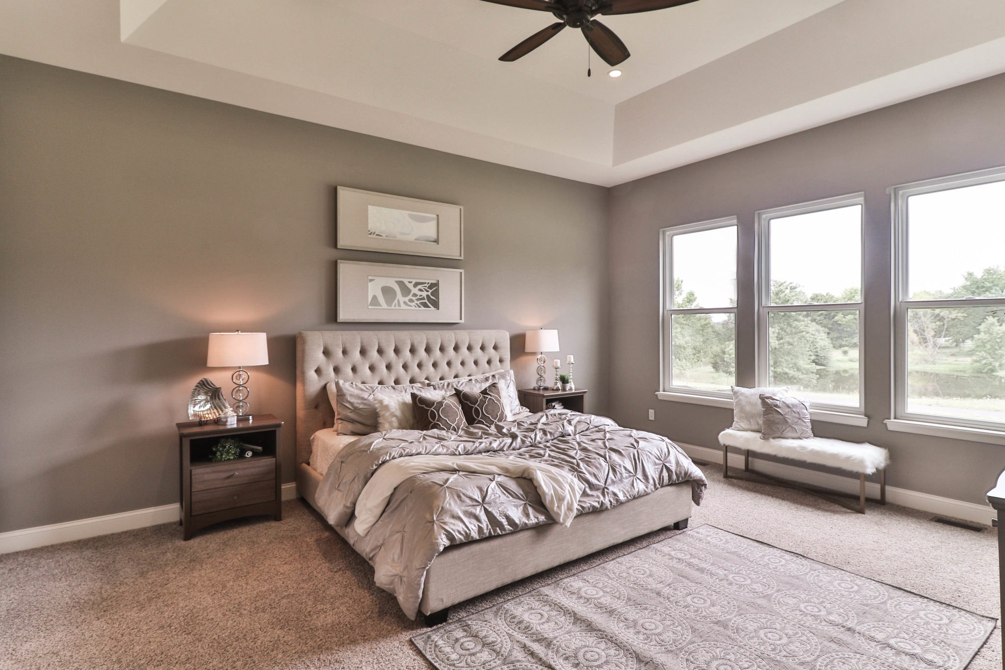 Серый ковролин в спальне