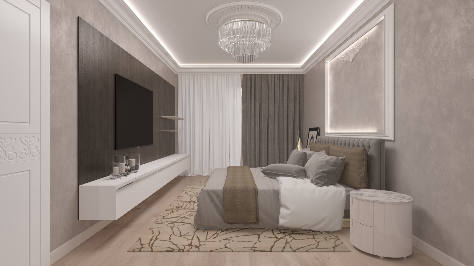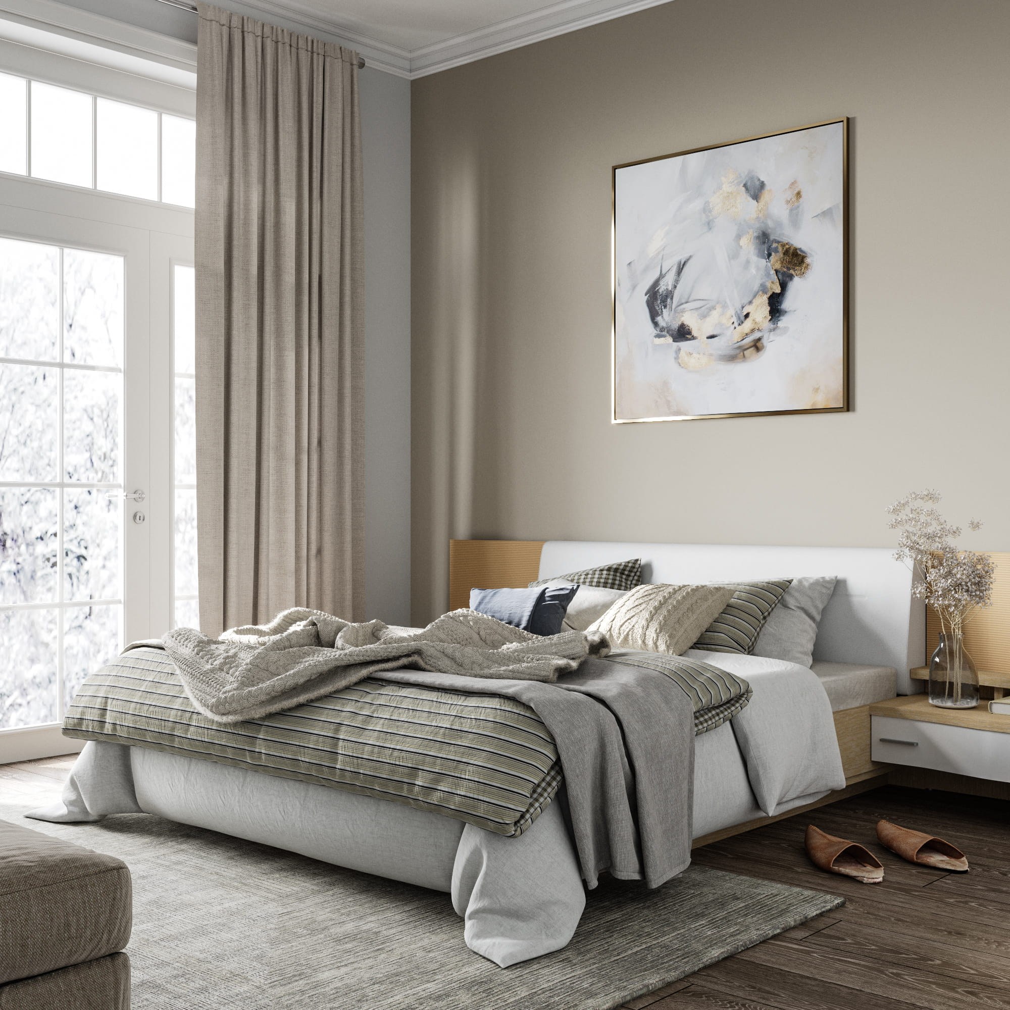 Спальня в молочно серых тонах