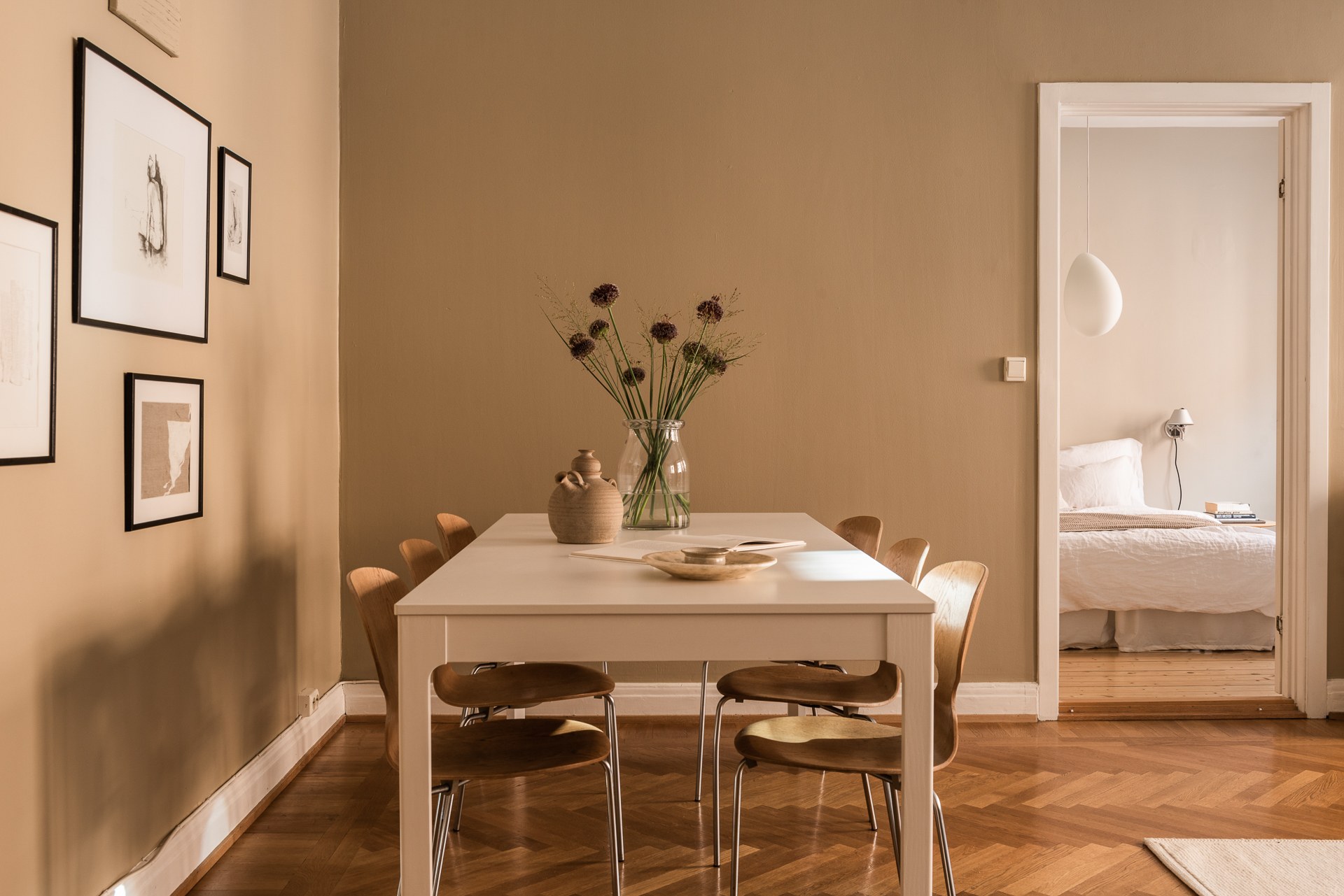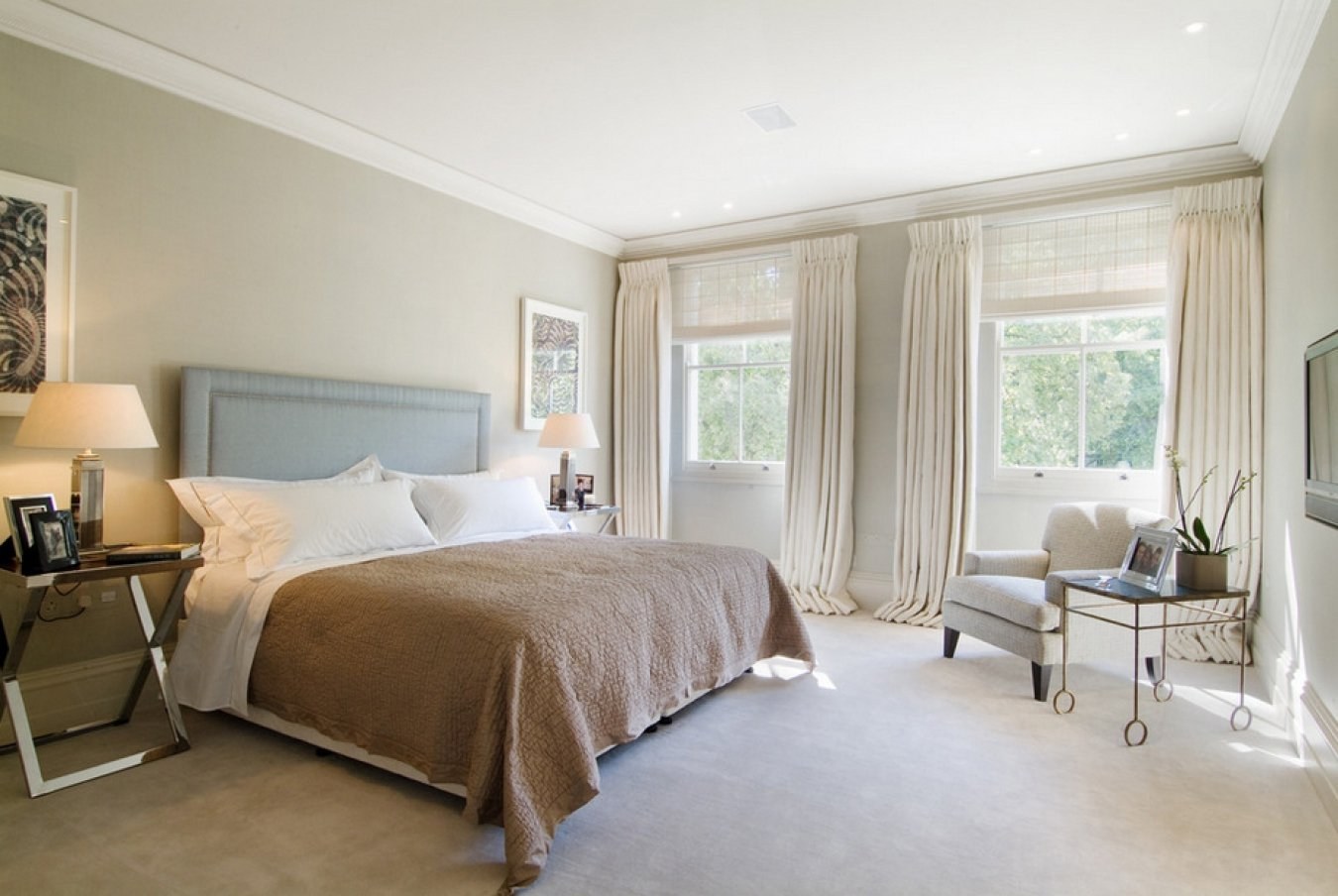 Бежевые стены в спальне