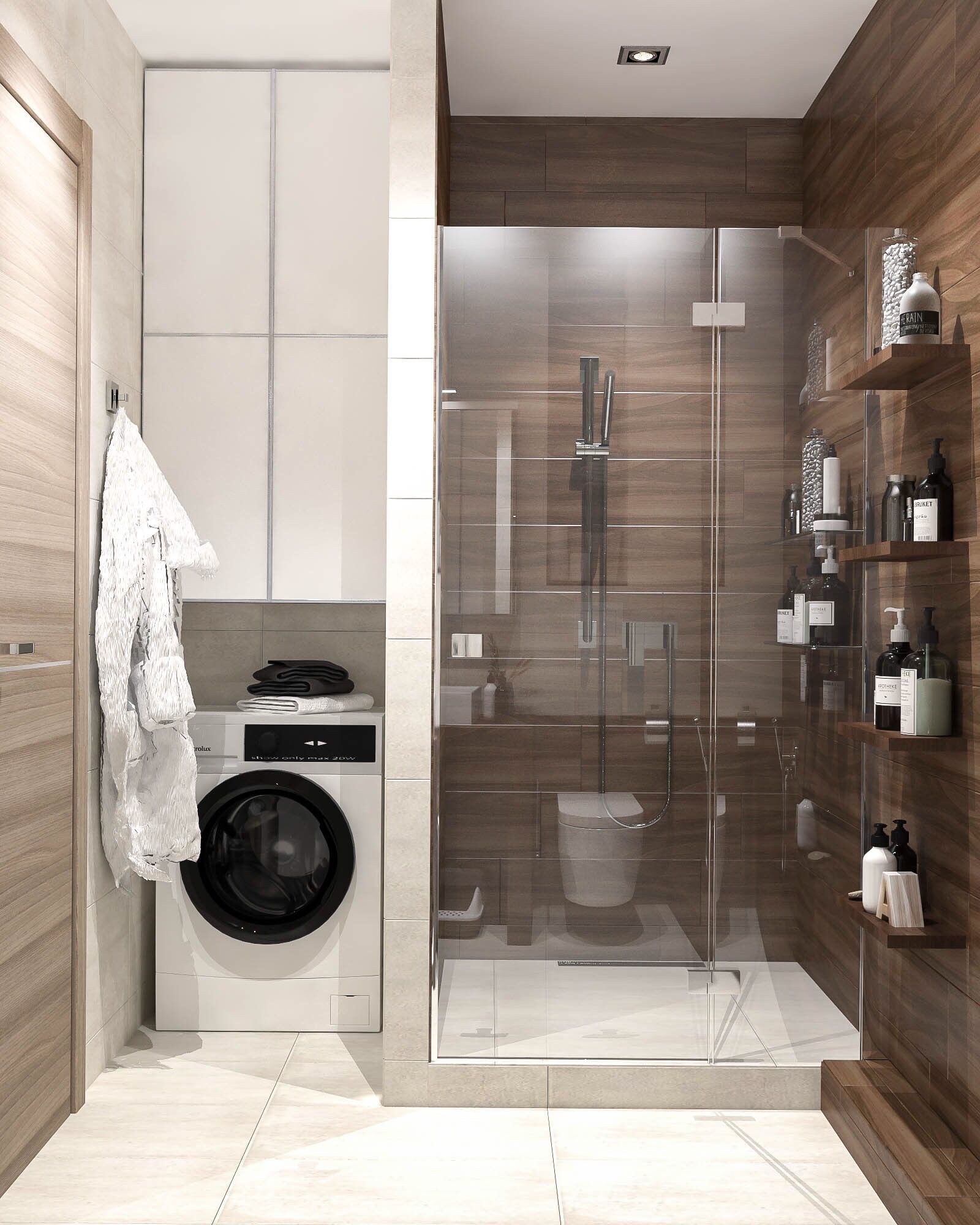 Дизайн совмещенного санузла с душевой кабиной и стиральной (44 фото)