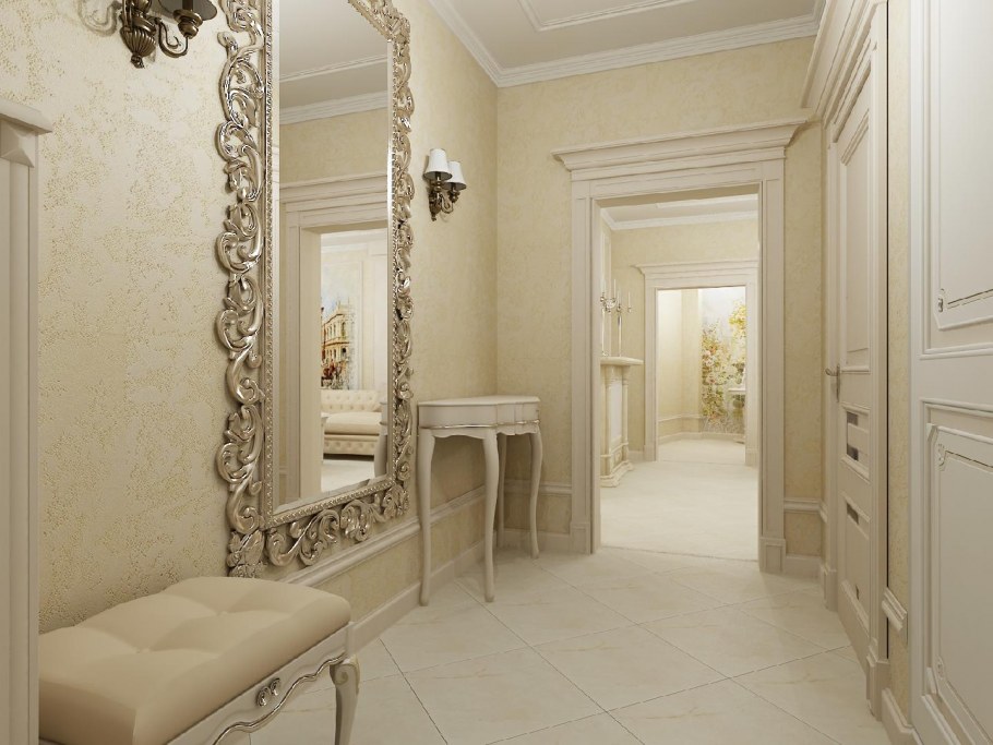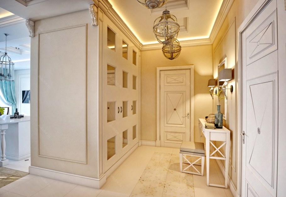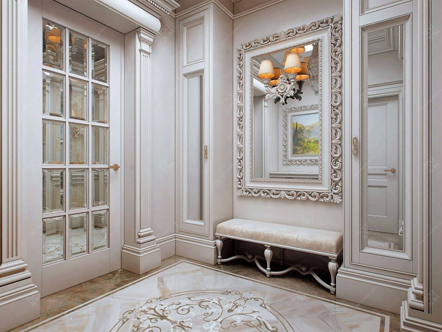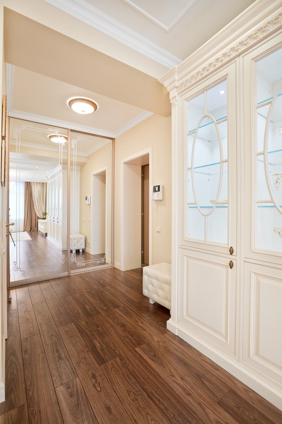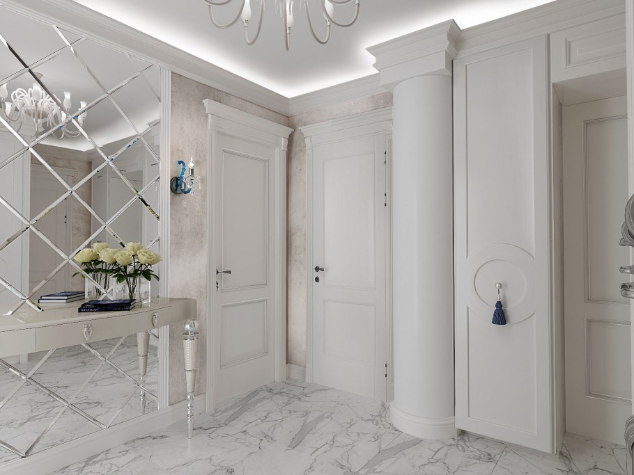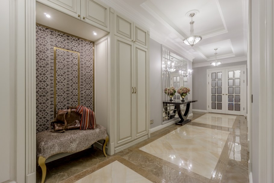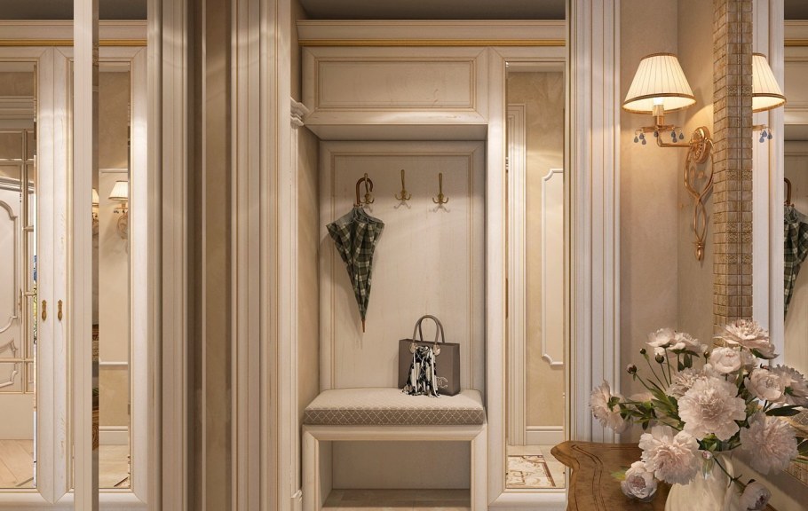 Прихожая в стиле неоклассика в светлых тонах (39 фото)
