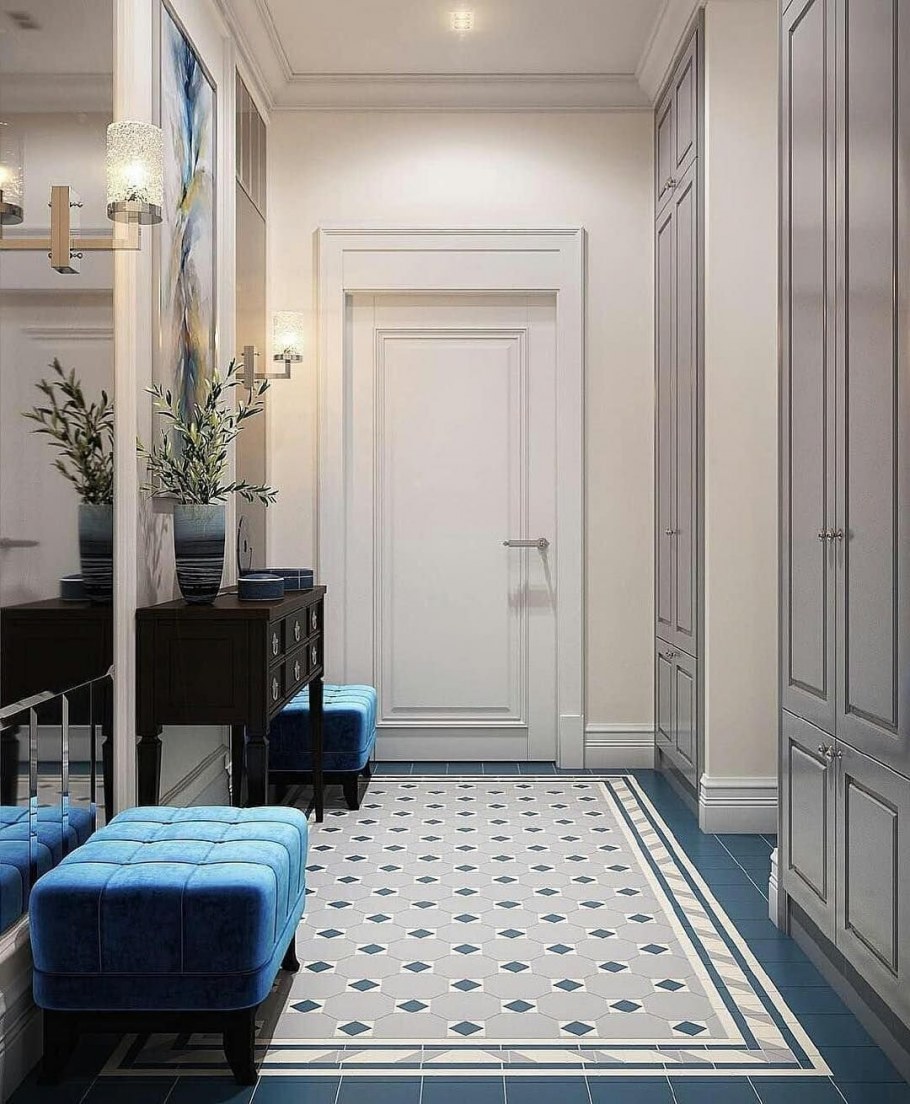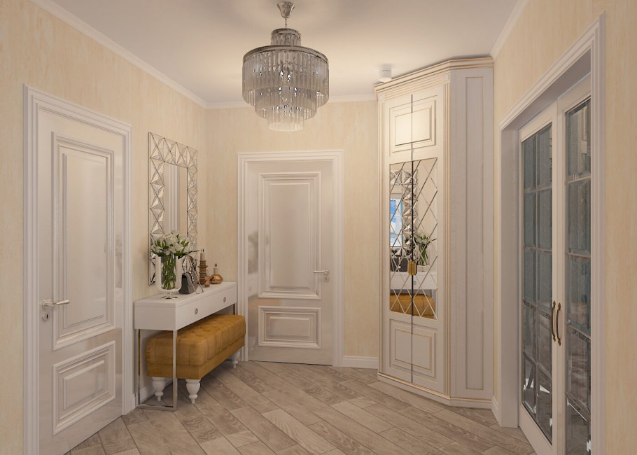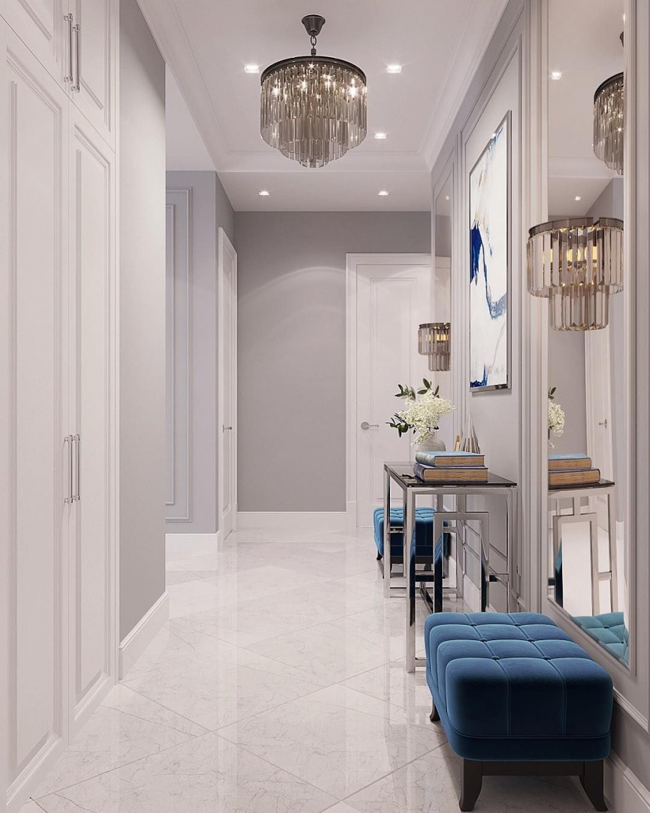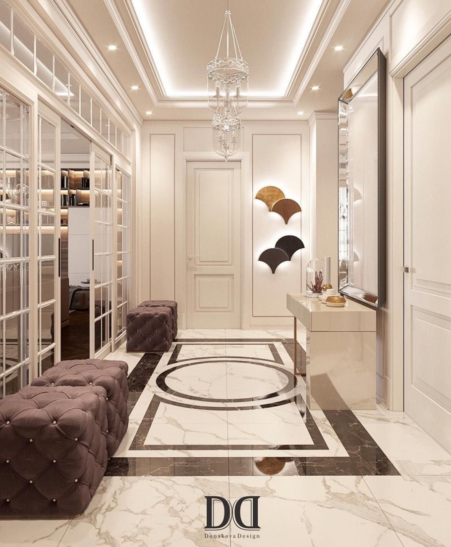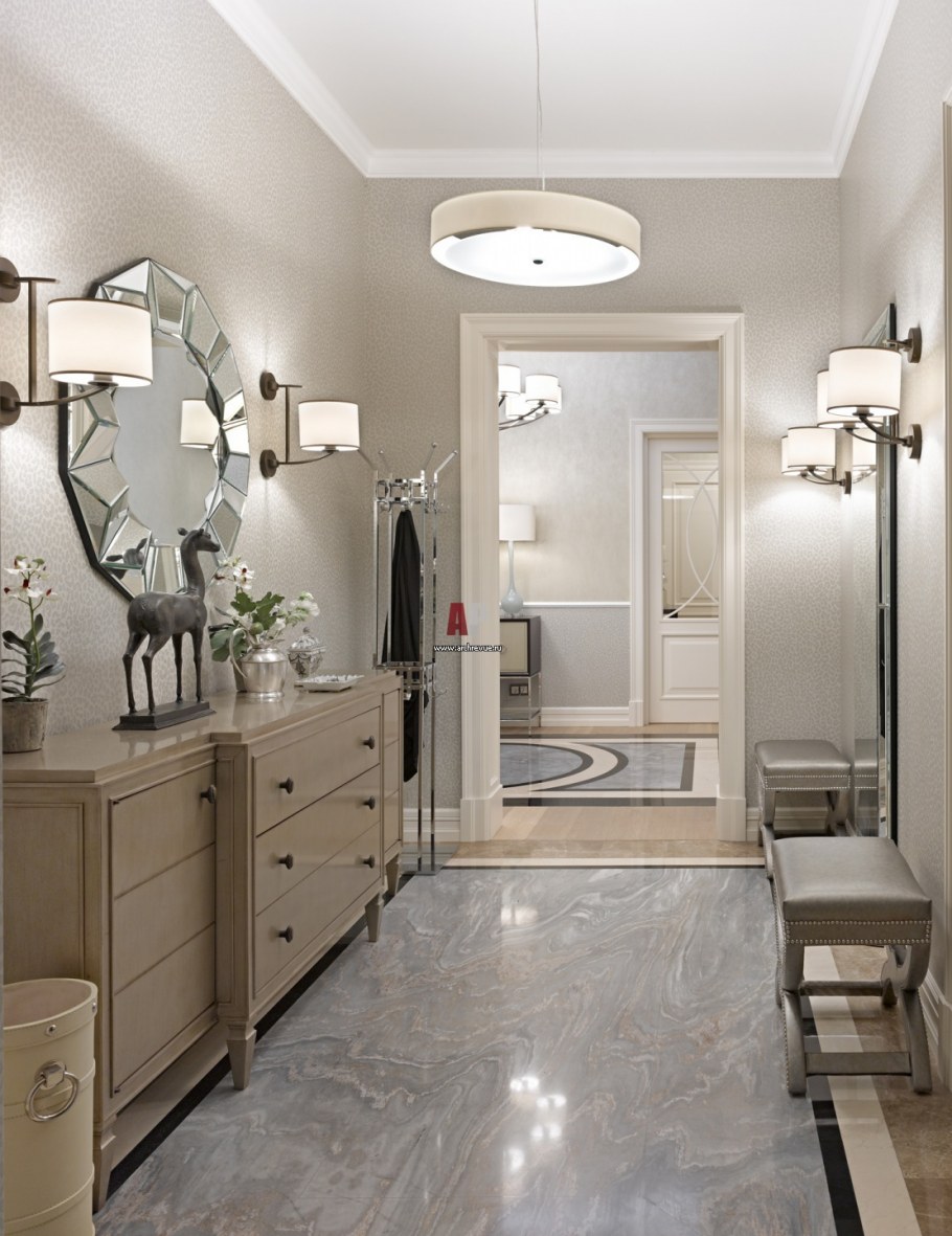 Прихожая в стиле неоклассика в светлых тонах (39 фото)