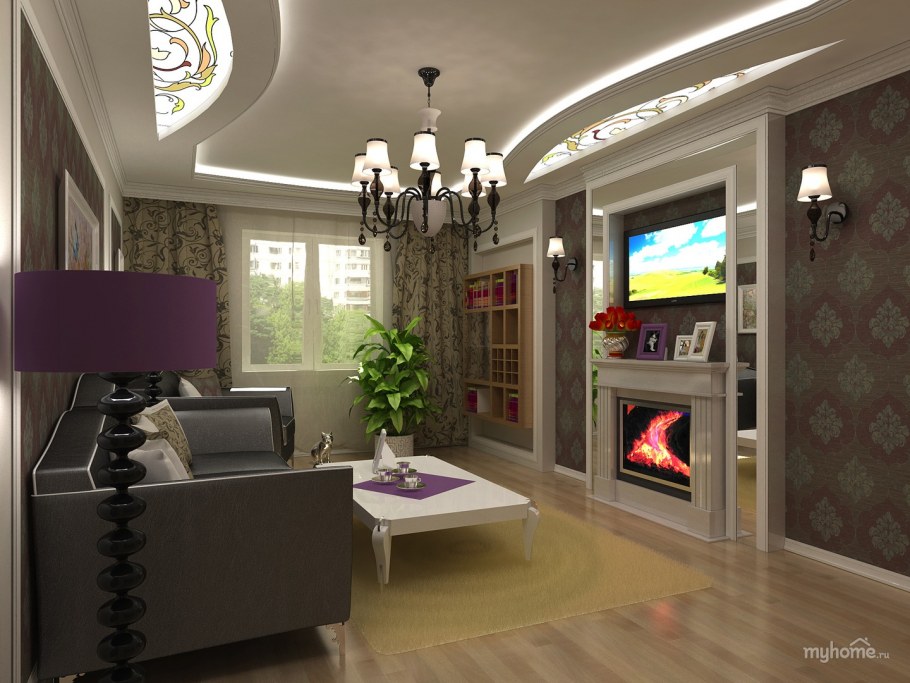 Интерьер гостиной без окон