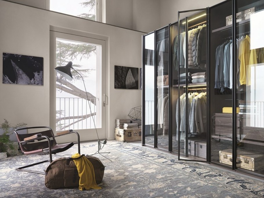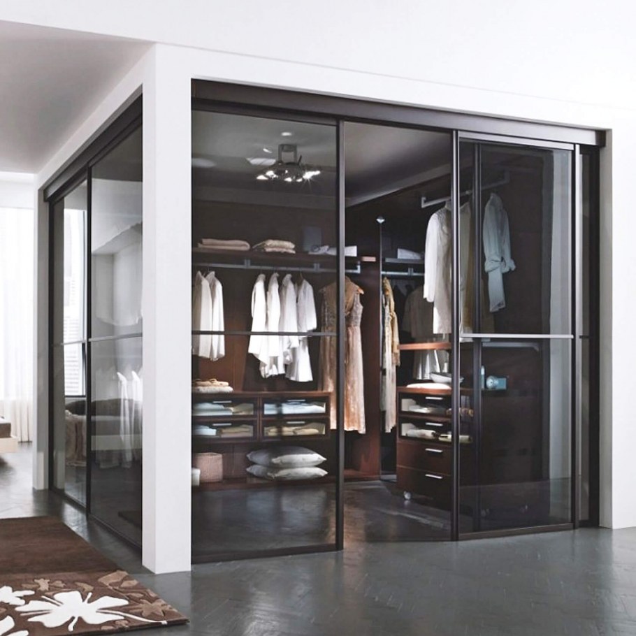 Гардеробная с тонированными стеклянными дверями (46 фото)