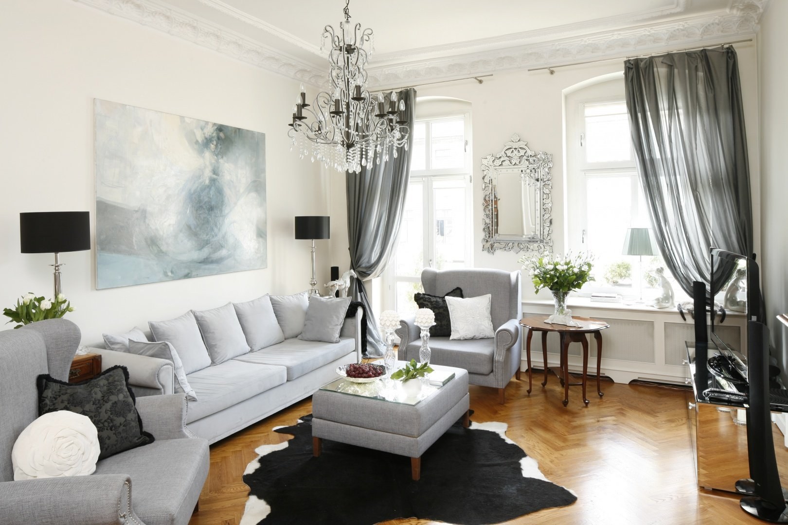 Гостиная в серо белых тонах