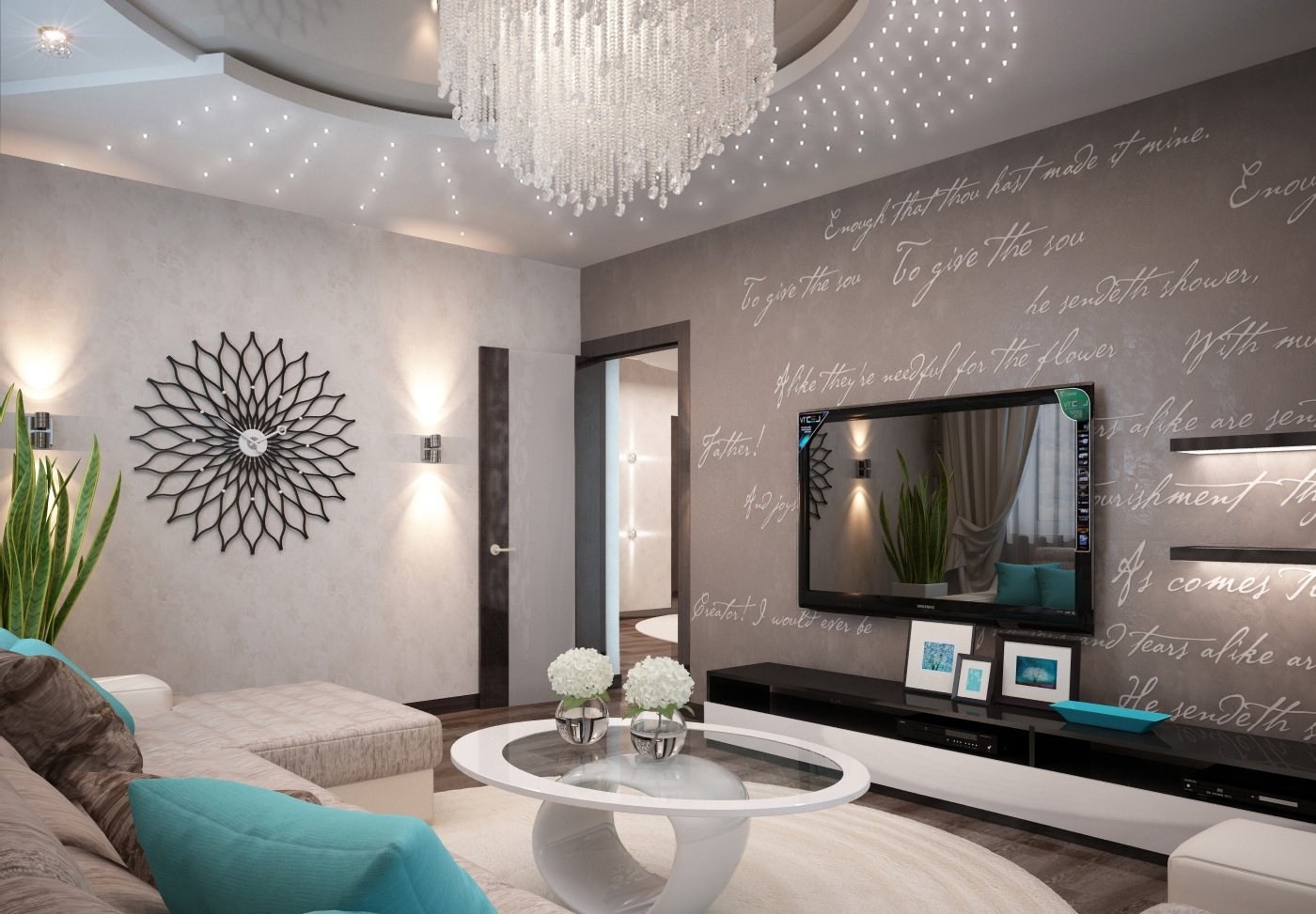 Гостиная в бежево бирюзовом цвете