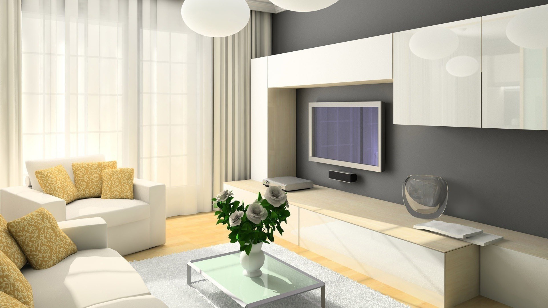 Бело серый интерьер гостиной