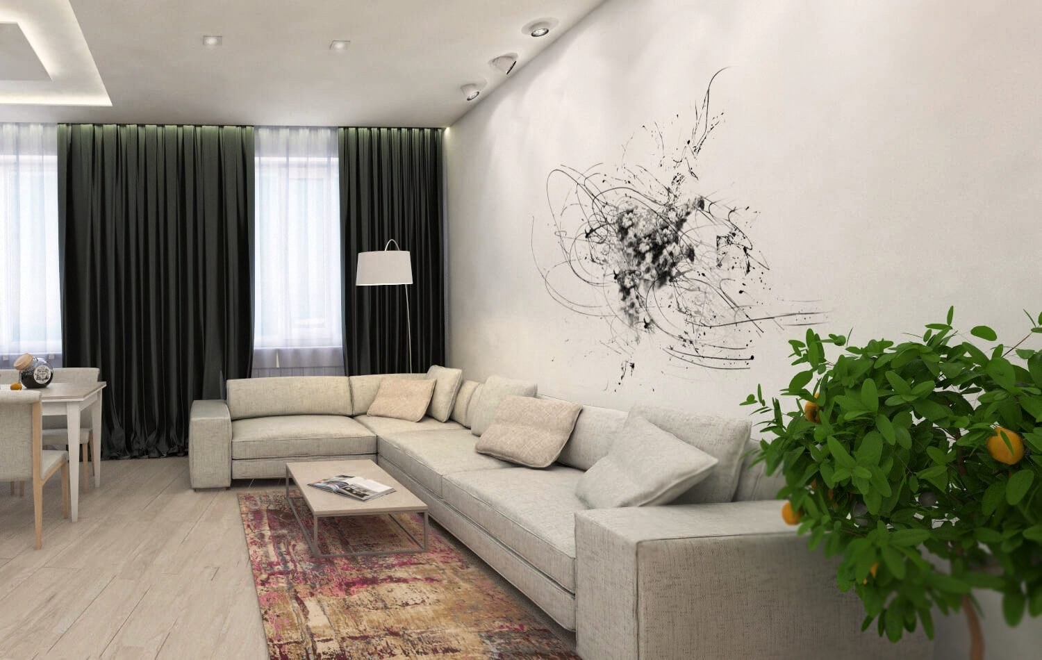 Современная гостиная с угловым диваном