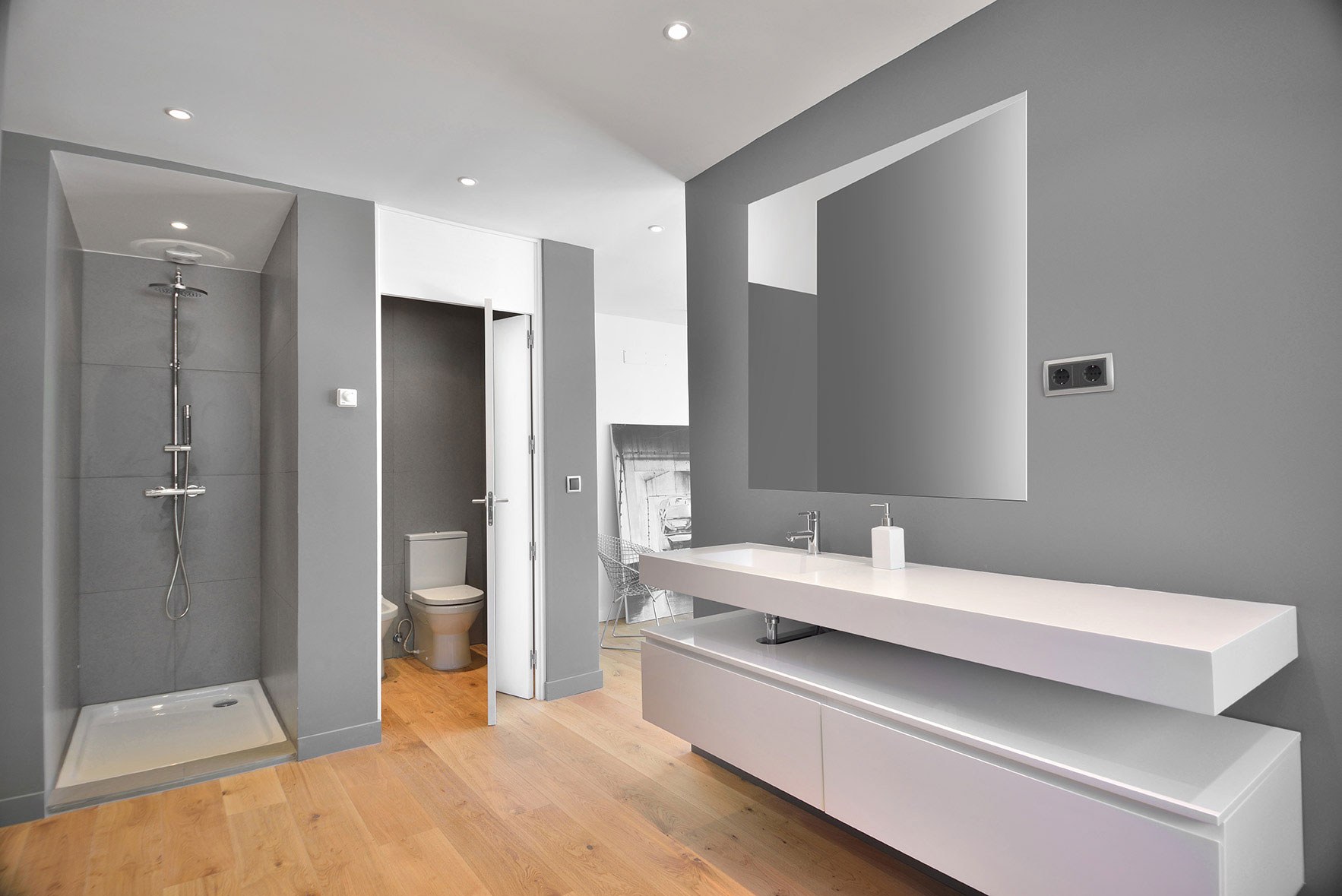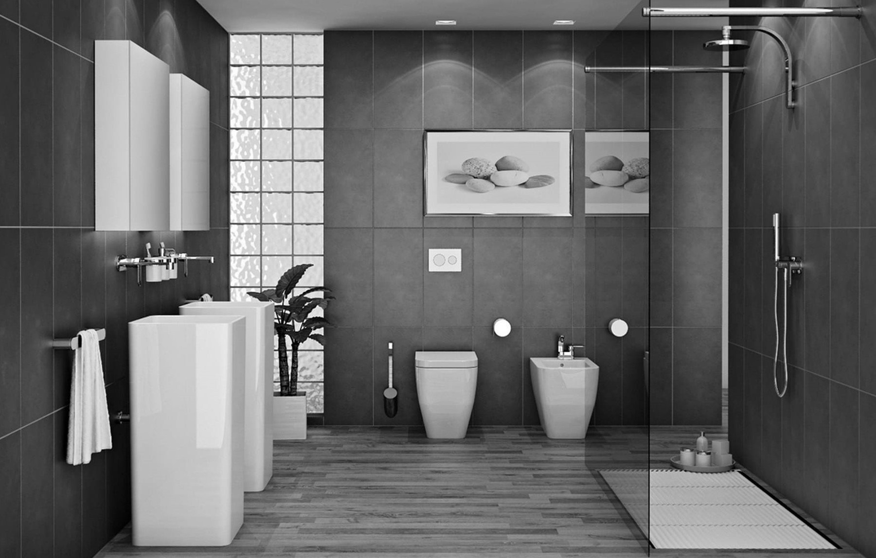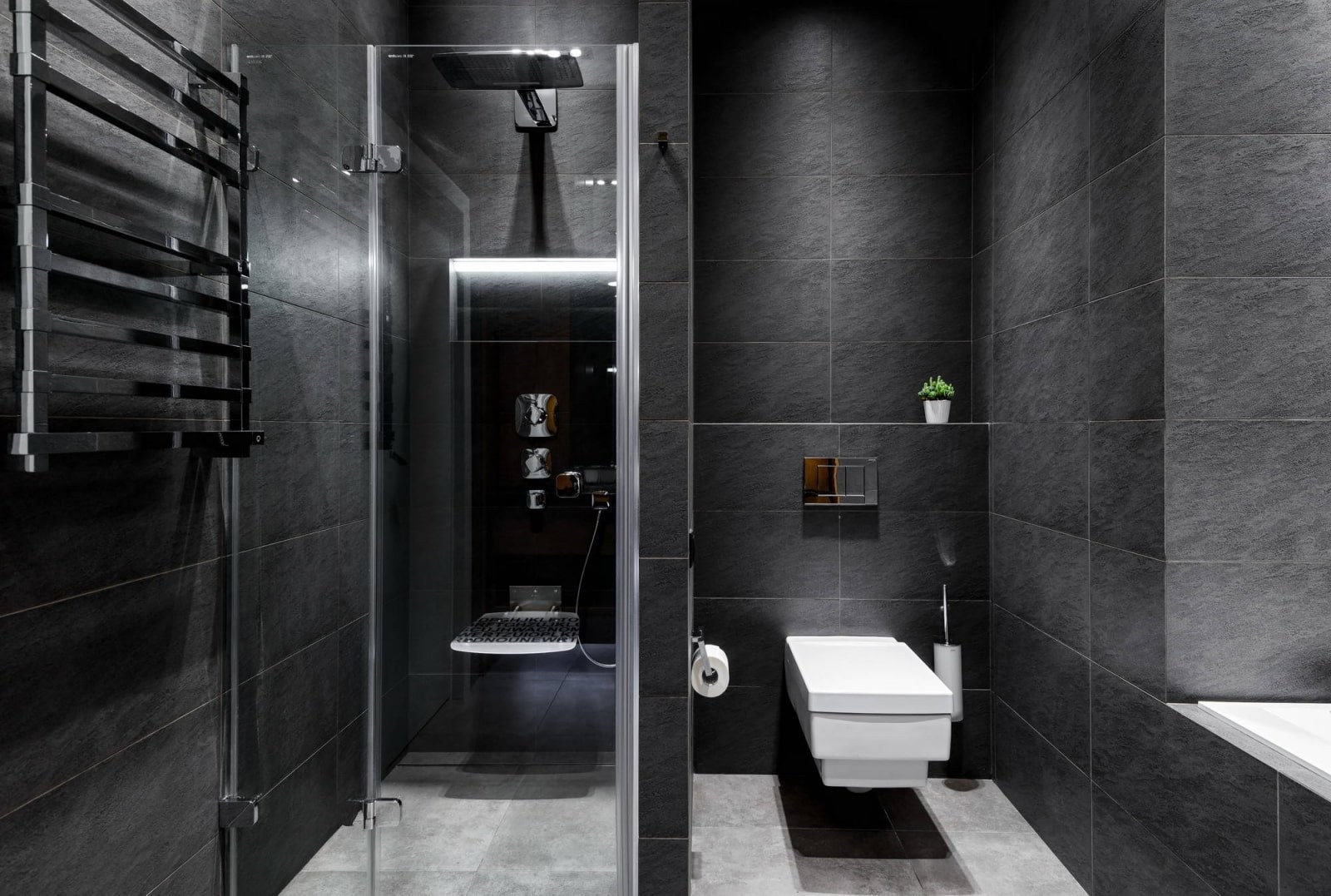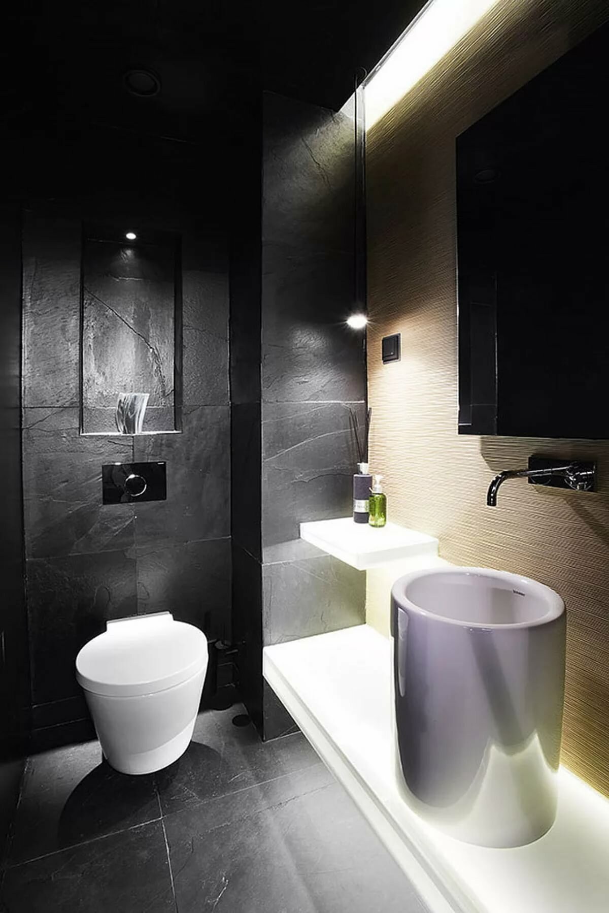 Туалет в серых тонах в современном стиле в интерьере (43 фото)