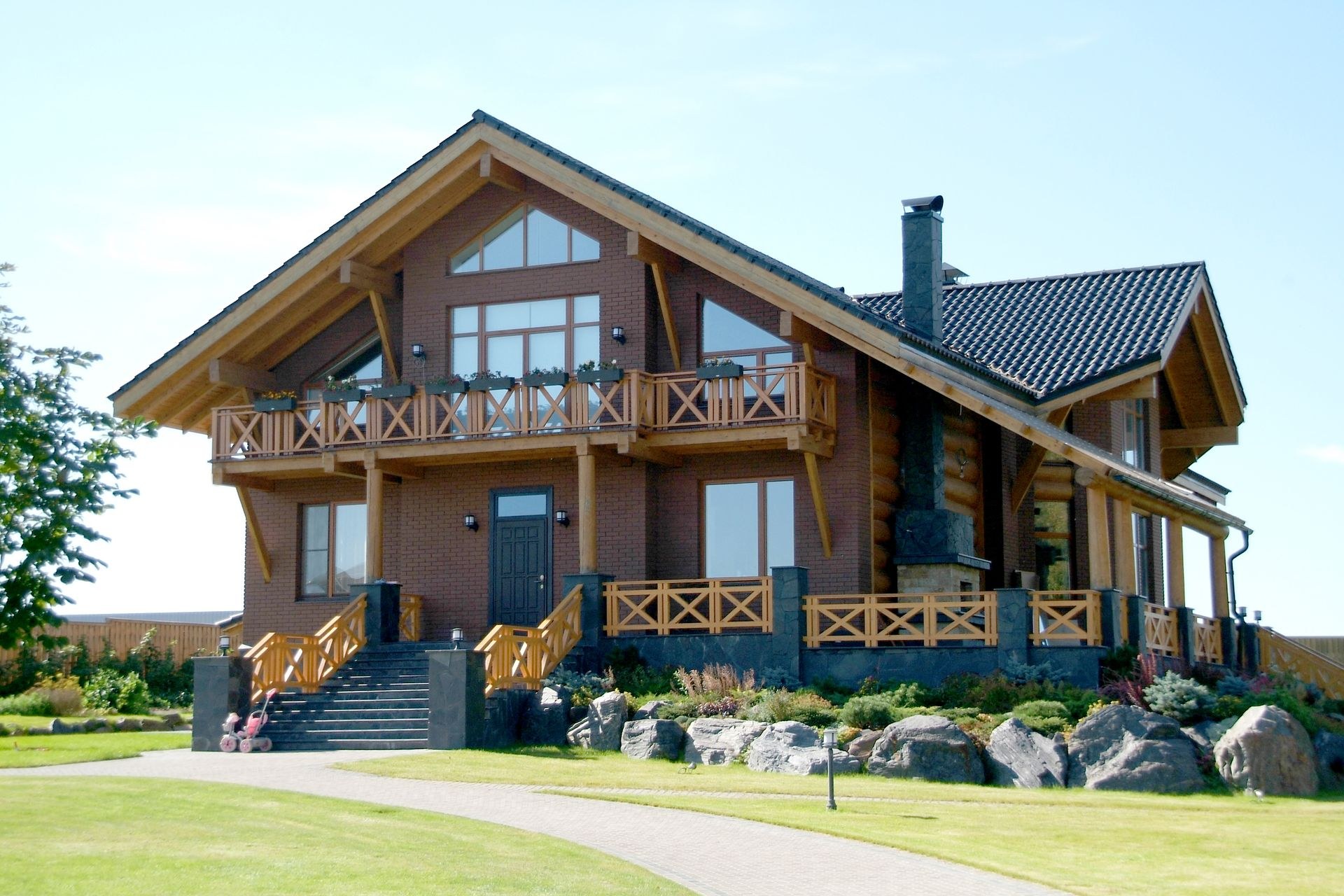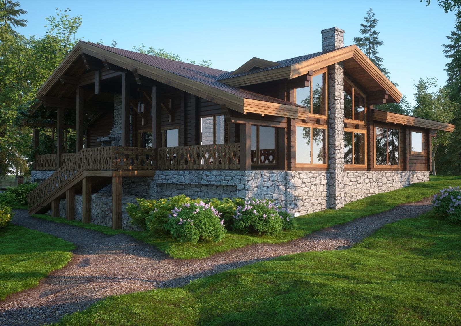 Идеи дома двускатная крыша в стиле Шале