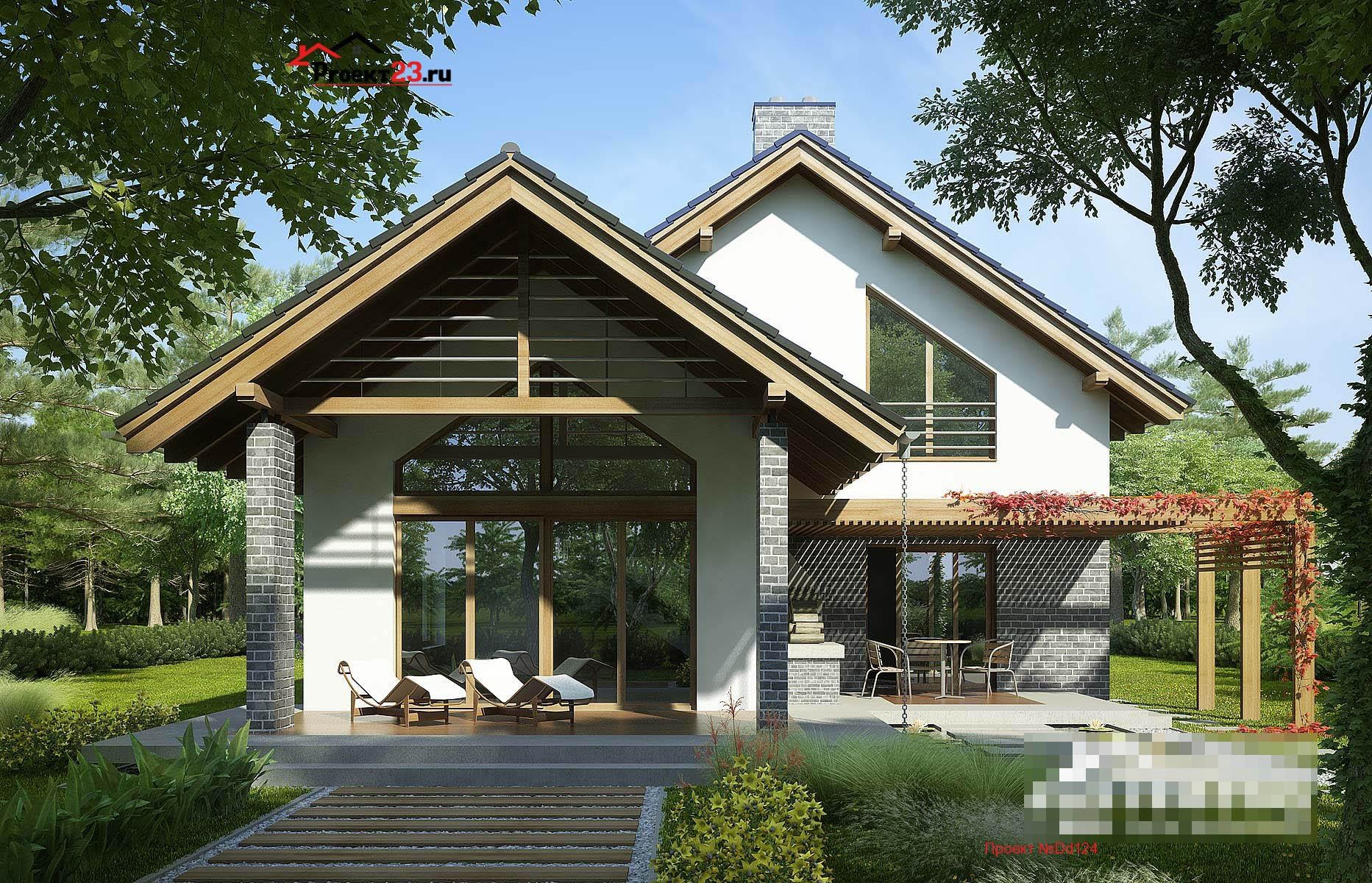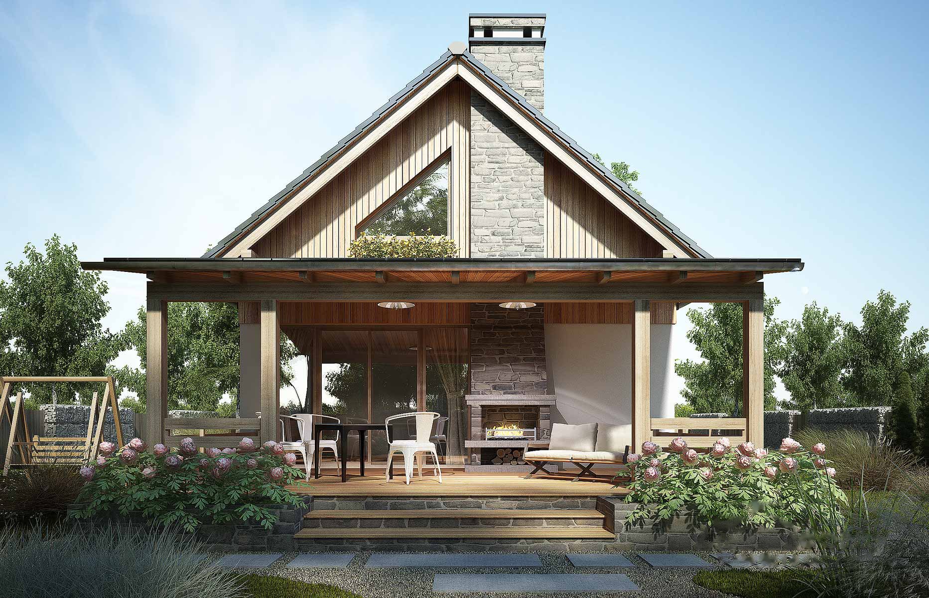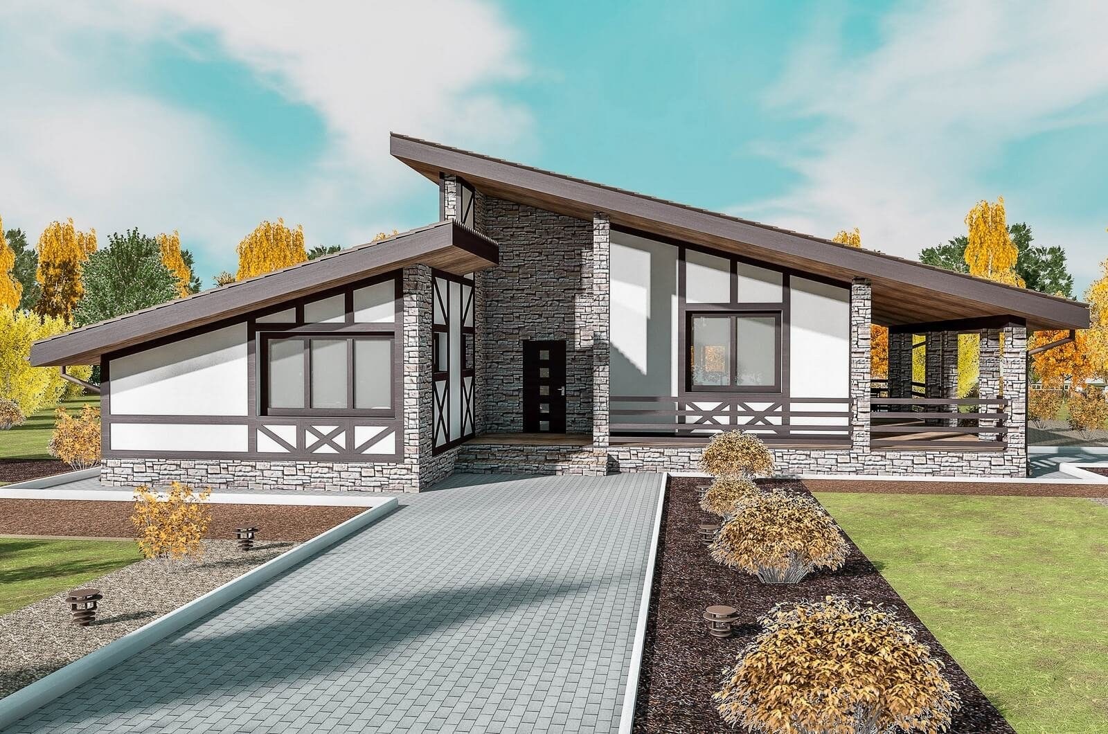 Дом в стиле Шале одноэтажный с террасой