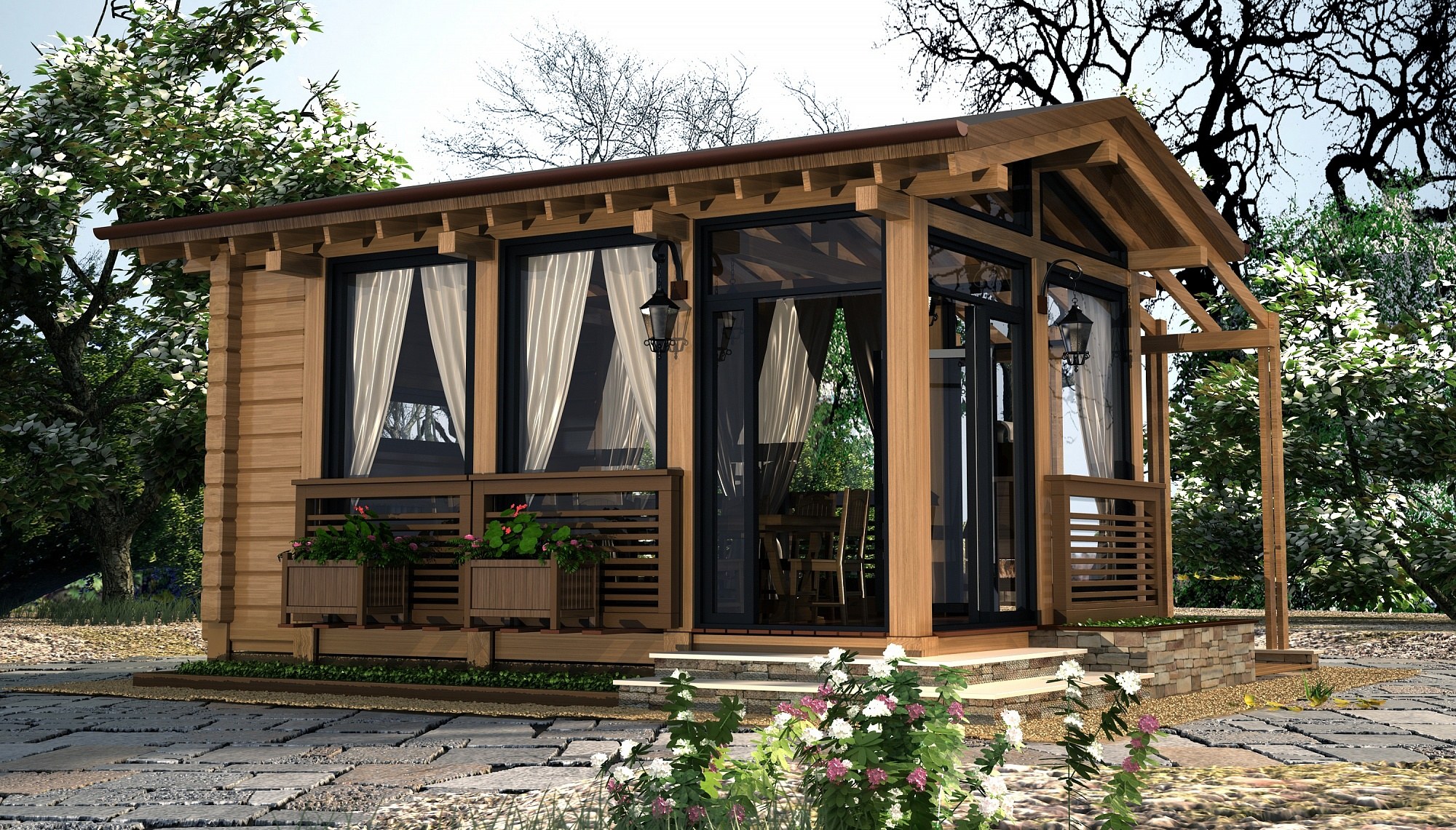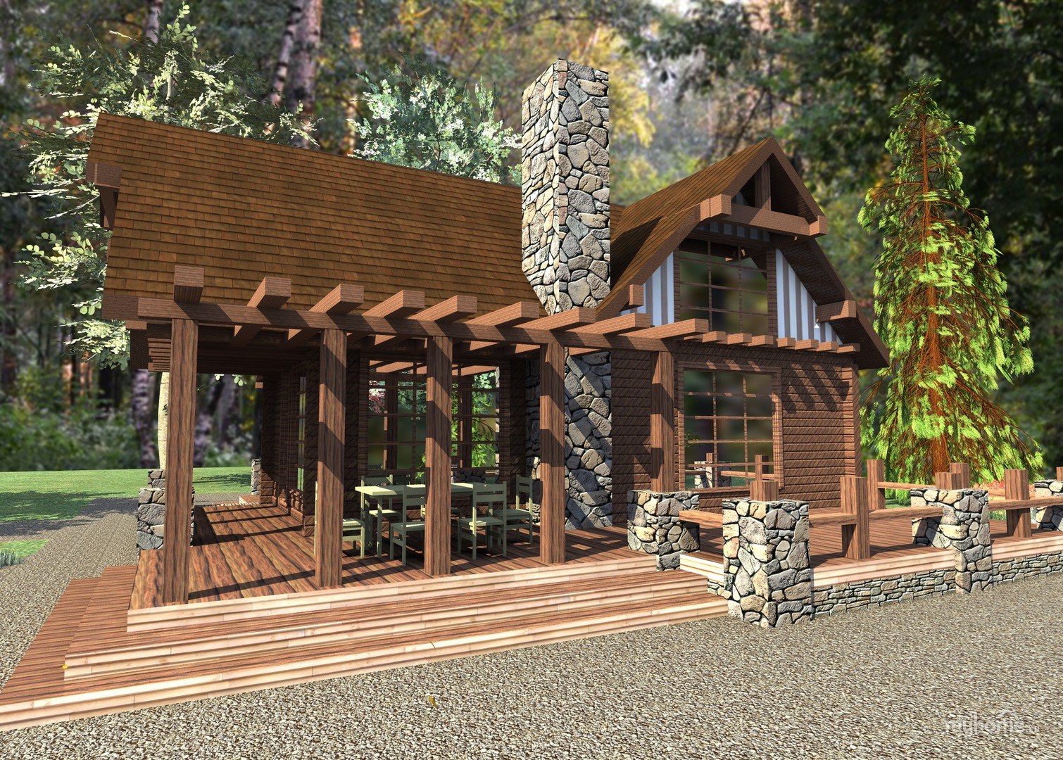 Двускатная веранда в стиле шале (62 фото)