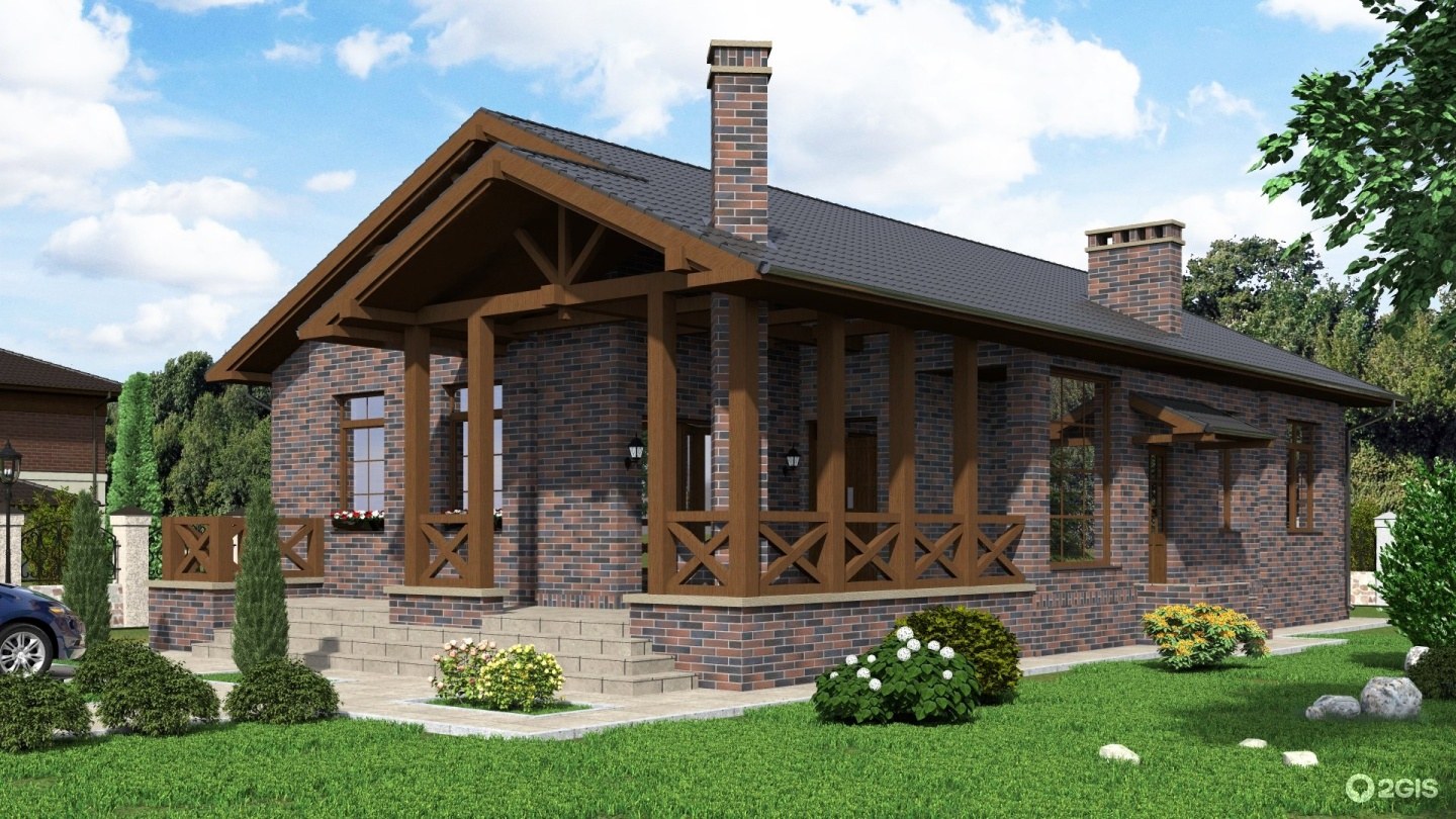 Одноэтажный дом в баварском стиле из кирпича