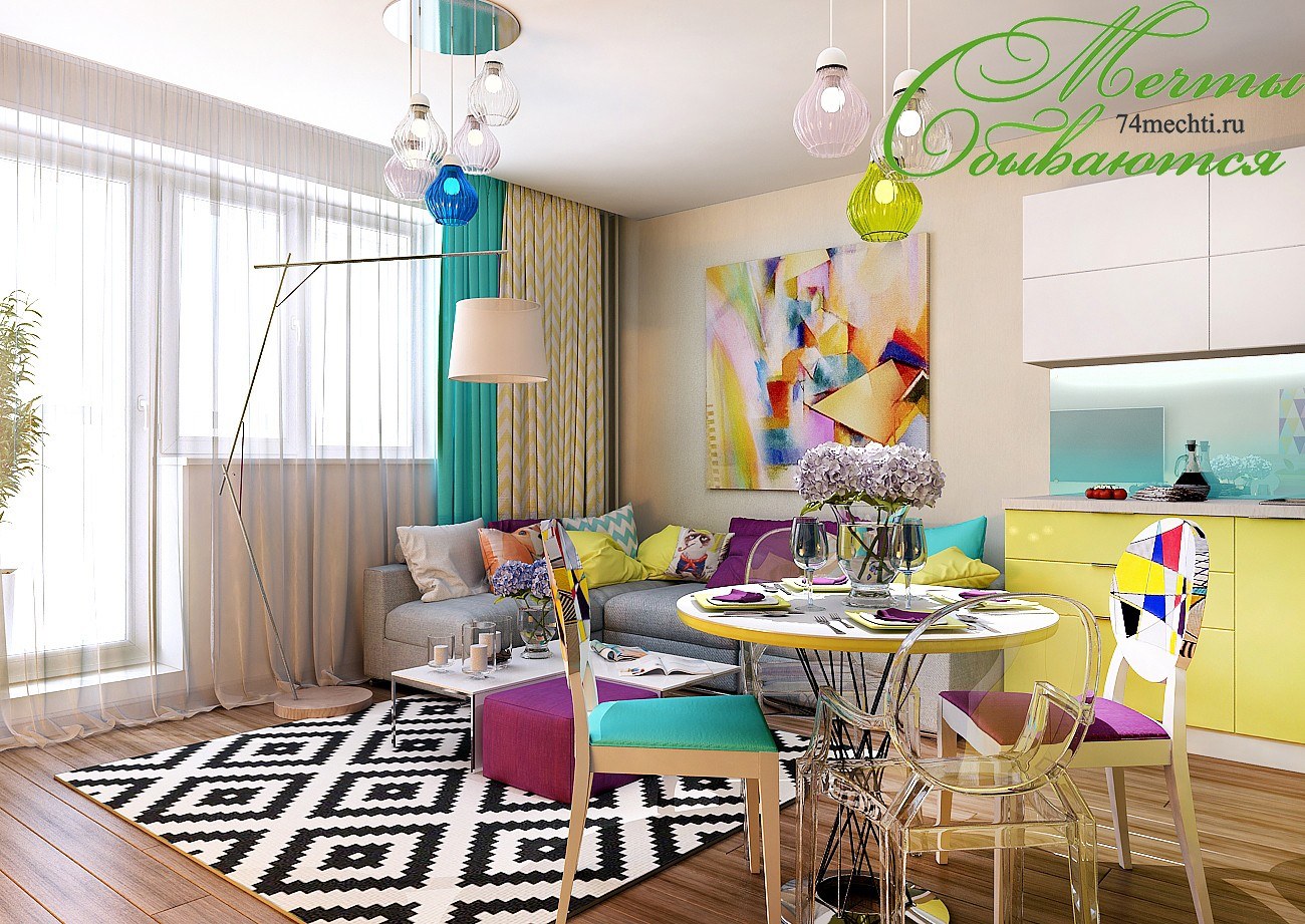 Яркие интерьеры для однушки